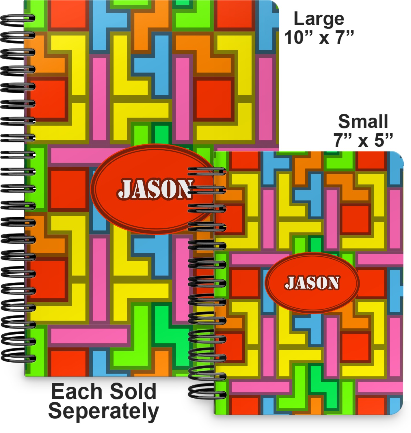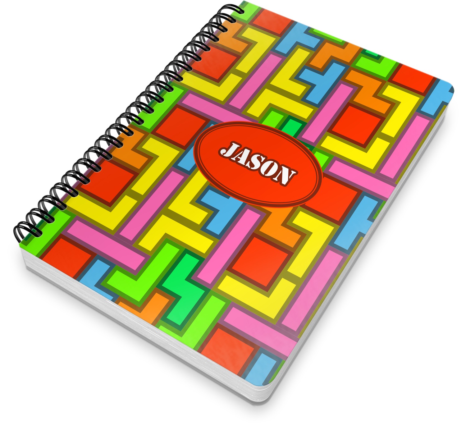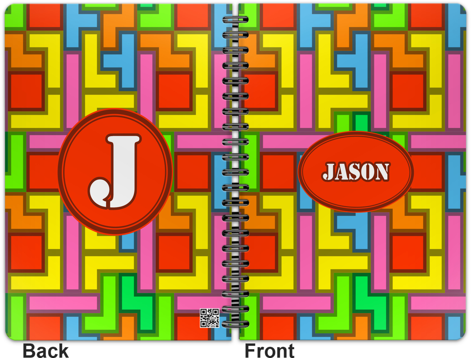 This spiral notebook includes 75 sheets of thick, ruled paper. The front and back of this custom notebook is made of a robust, laminate, plastic covering. We print your personalization on these two panels, underneath a glossy finish, which emphasizes the colors of your design. The two panels and the sheets of paper are held together by a sturdy, black coil. The paper within your bound notebook is perforated for easy, clean tearing.