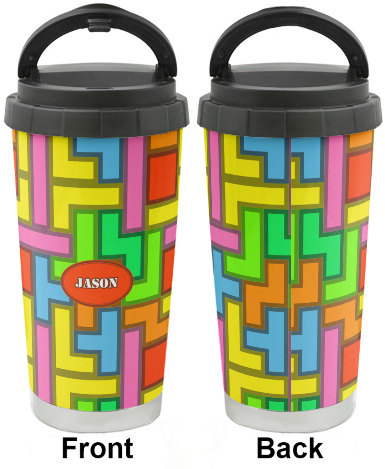 The tetromino print offers all the classic colors and shapes to delight a true gamer. A big oval label breaks up the pattern and highlights the personalization of your choice.
