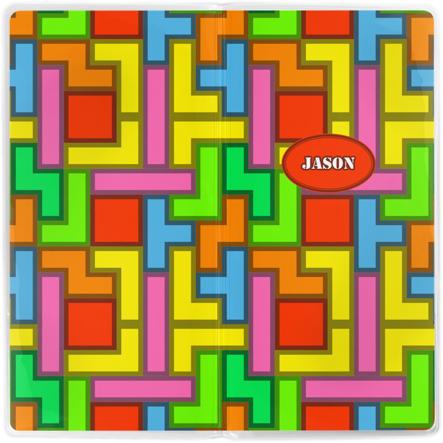The tetromino print offers all the classic colors and shapes to delight a true gamer. A big oval label breaks up the pattern and highlights the personalization of your choice.