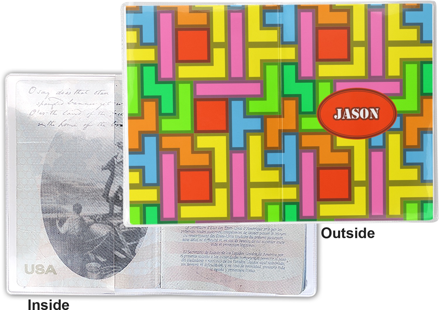 This cover is made of a sturdy clear vinyl with a personalized vinyl insert inside. There is a large and a small pocket on either side to hold the covers of your passport easily and firmly. The passport holder is approximately 7.5" x 5.25", the perfect size to snugly fit your passport. This slim cover is the perfect way to protect your passport without being one more bulky item you have to carry.