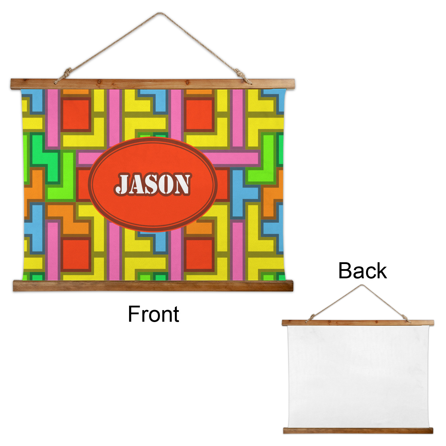 Made in two different orientations - portrait or landscape - both are 26" x 36". Your design is printed on a high quality polyester fabric with hemmed edges. The wood on the top and bottom of the tapestry is 1.25" tall and 0.25" thick and there are two pieces on top and bottom which sandwich the fabric.