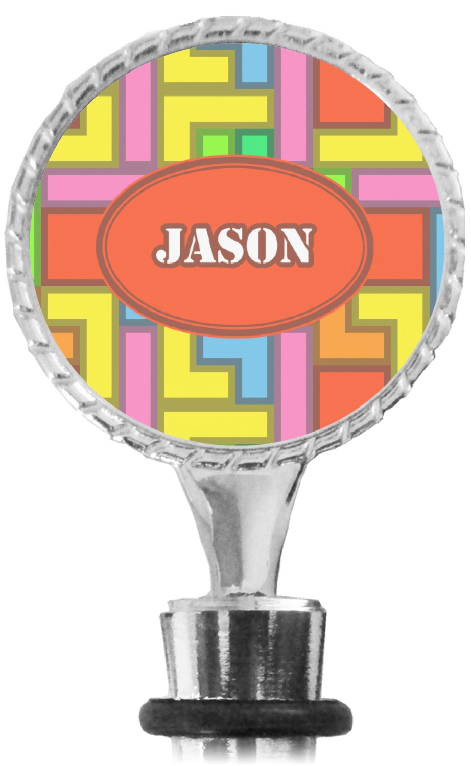 The top part of your bottle stopper is comprised of a zinc ring that displays your customization(s) in its middle, on both sides. The ring is heavy duty, with a bright chrome finish. The body of the wine stoppers have two silicone rings to provide an airtight seal. These wine bottle stoppers measure at 1.625" L x 0.8125" W x 4.625" H; your custom wine stopper is meant to fit into most standard-sized wine bottles.
