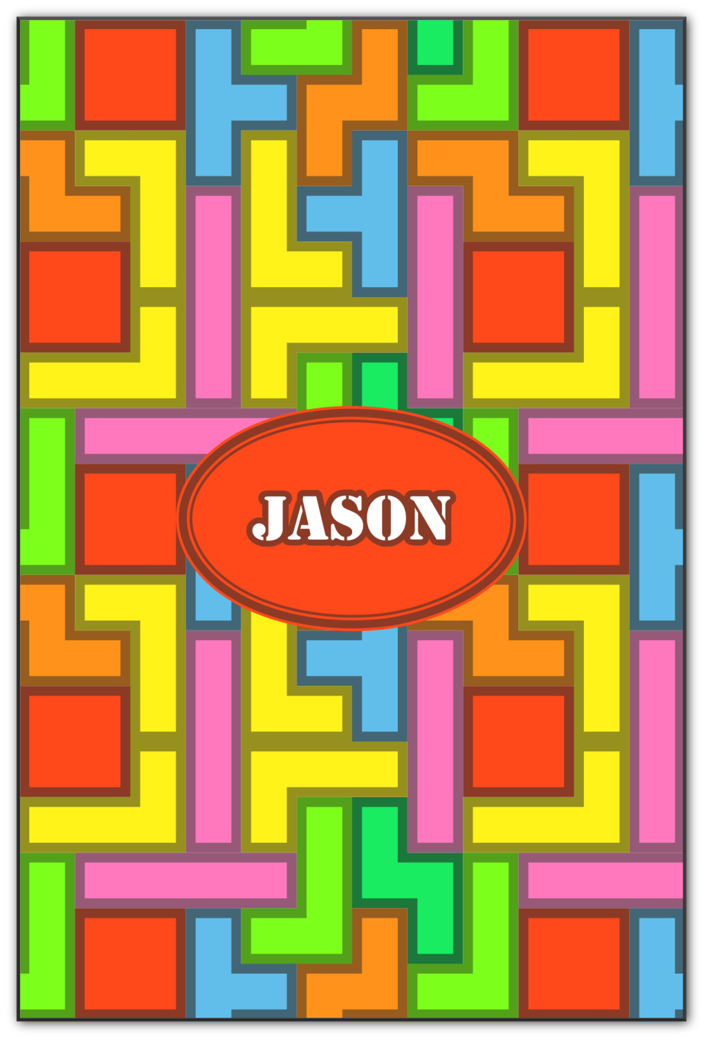 The tetromino print offers all the classic colors and shapes to delight a true gamer. A big oval label breaks up the pattern and highlights the personalization of your choice.