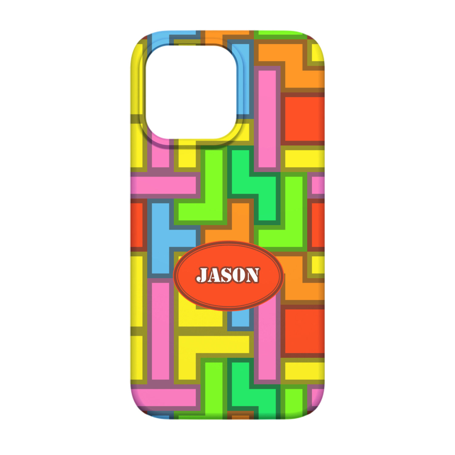 The tetromino print offers all the classic colors and shapes to delight a true gamer. A big oval label breaks up the pattern and highlights the personalization of your choice.