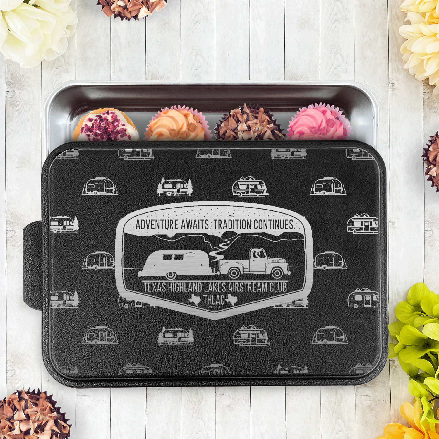 With the lid laser etched with the design of your choice these get the fully customized touch unique to you. The possibilities are endless when you go to design your own cake pan lid. With our design library you can make the design of your dreams come true.
