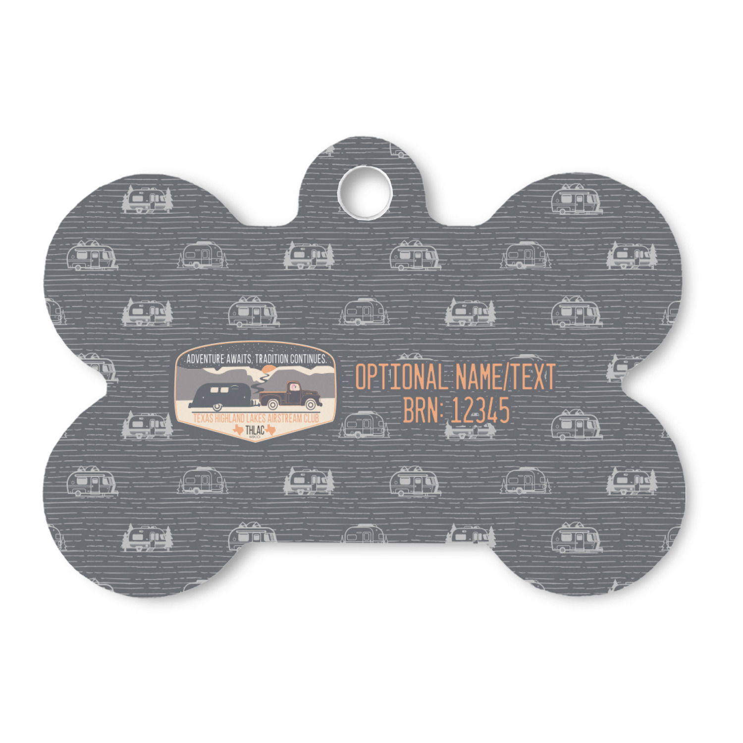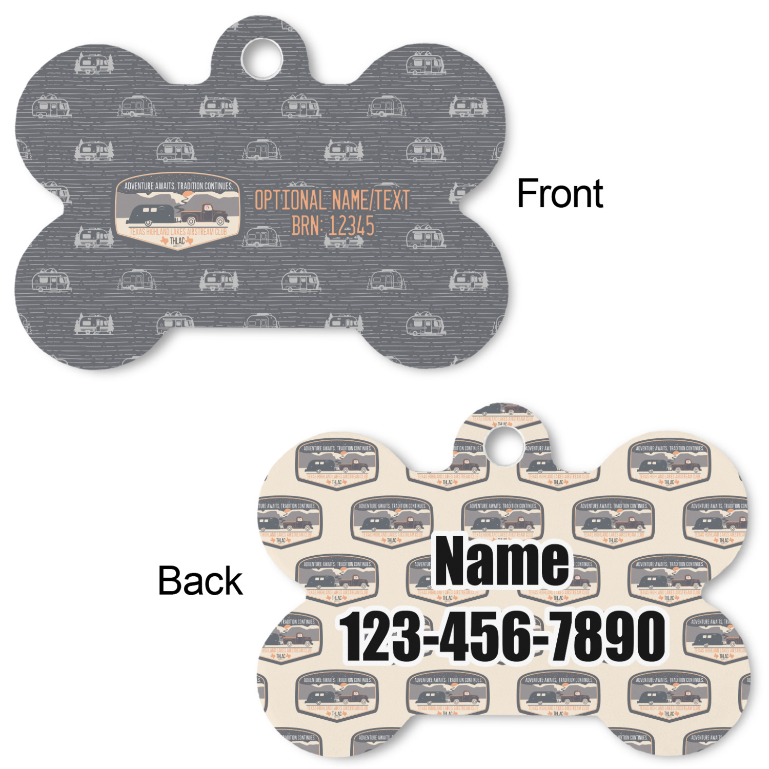 Shaped like a bone and made from aluminum, these tags are available in 2 different sizes.