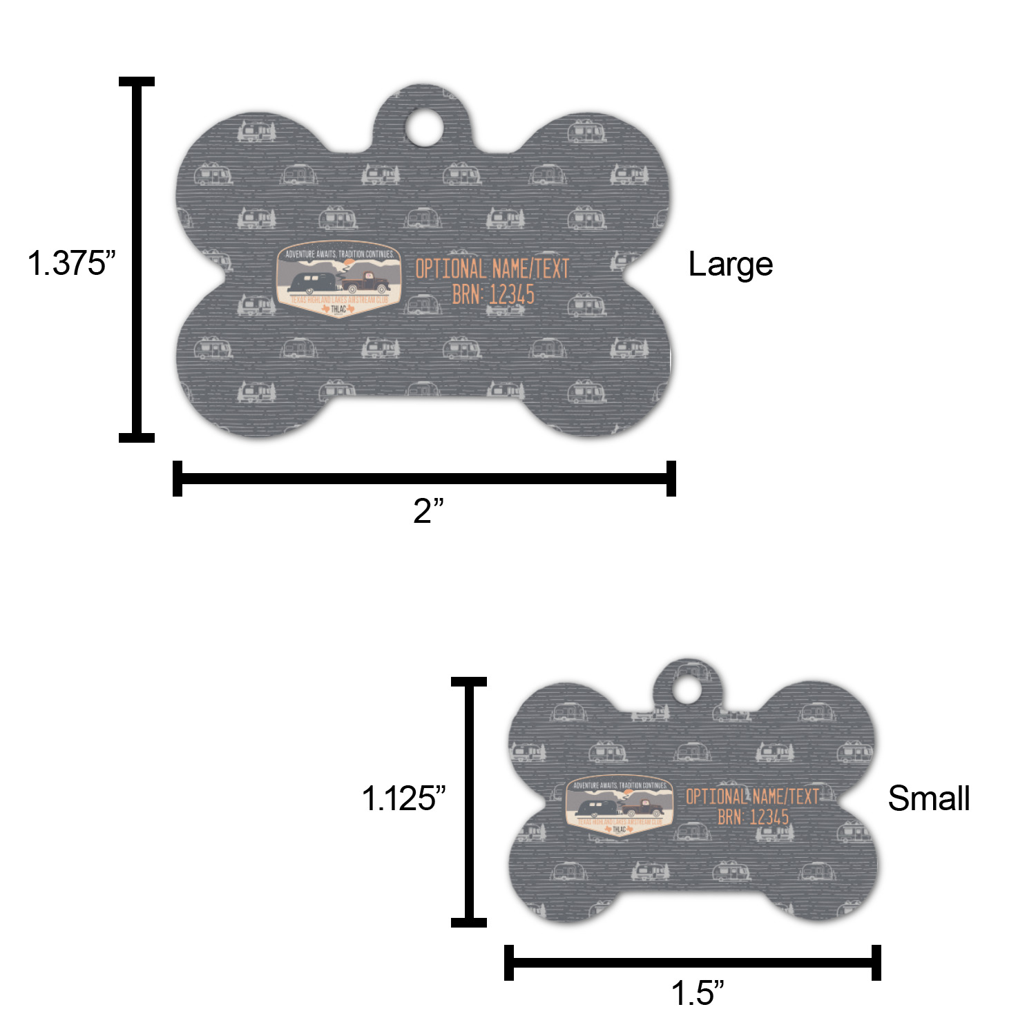 The small bone dog tag size is perfect to pair with our small dog collars, the large size pairs well with our large dog collars.