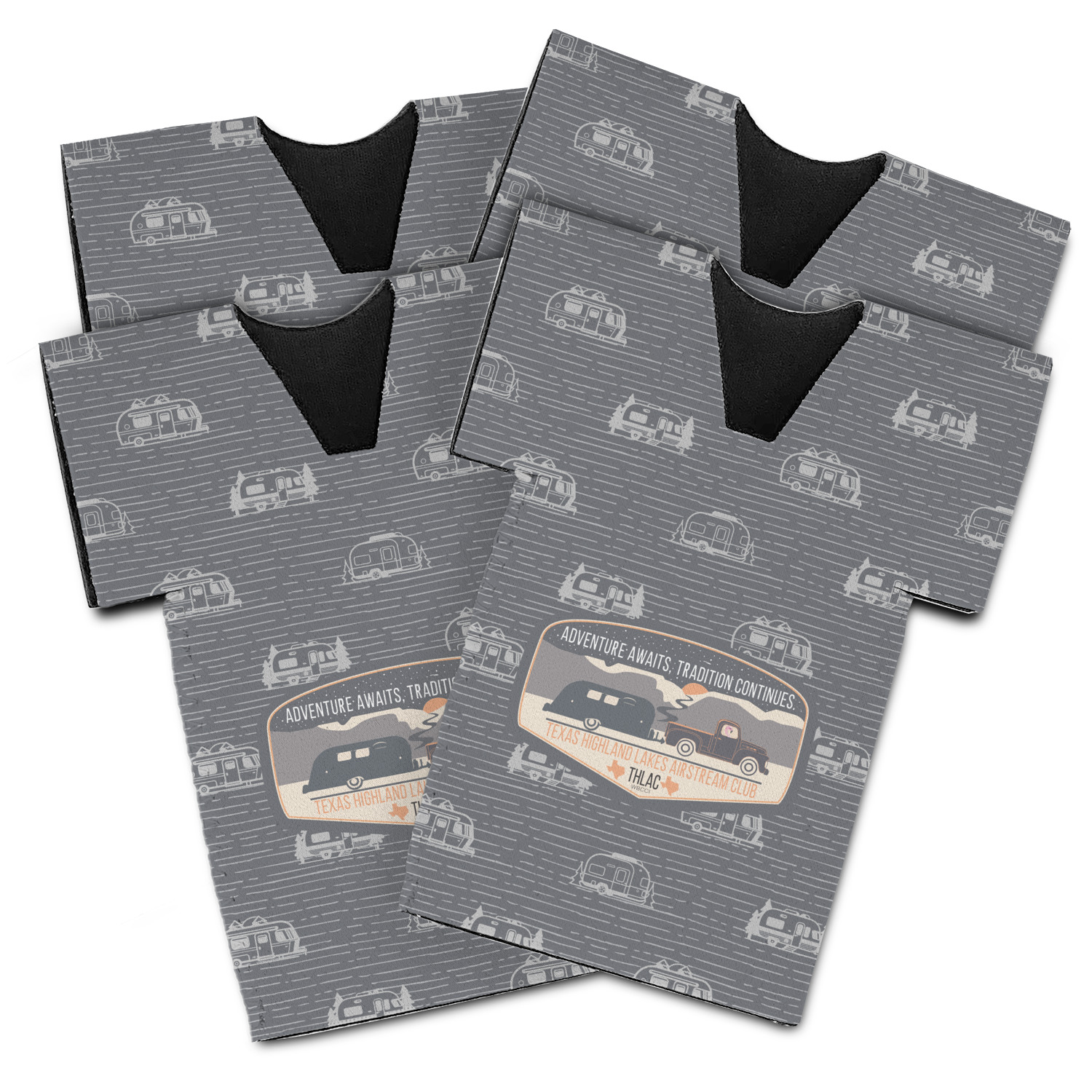 Fabricated from a thick, insulating neoprene, these custom can sleeve keep your drink cold, while proudly displaying your customization on all sides. These can sleeves are designed to fit most 12oz bottles. Available in two types - zipper cooler for insulating the full bottle or the jersey style for sports season. Also available as a single can sleeve or in a set of 4 for you to share with friends and family. For convenient storage, they can also be folded.