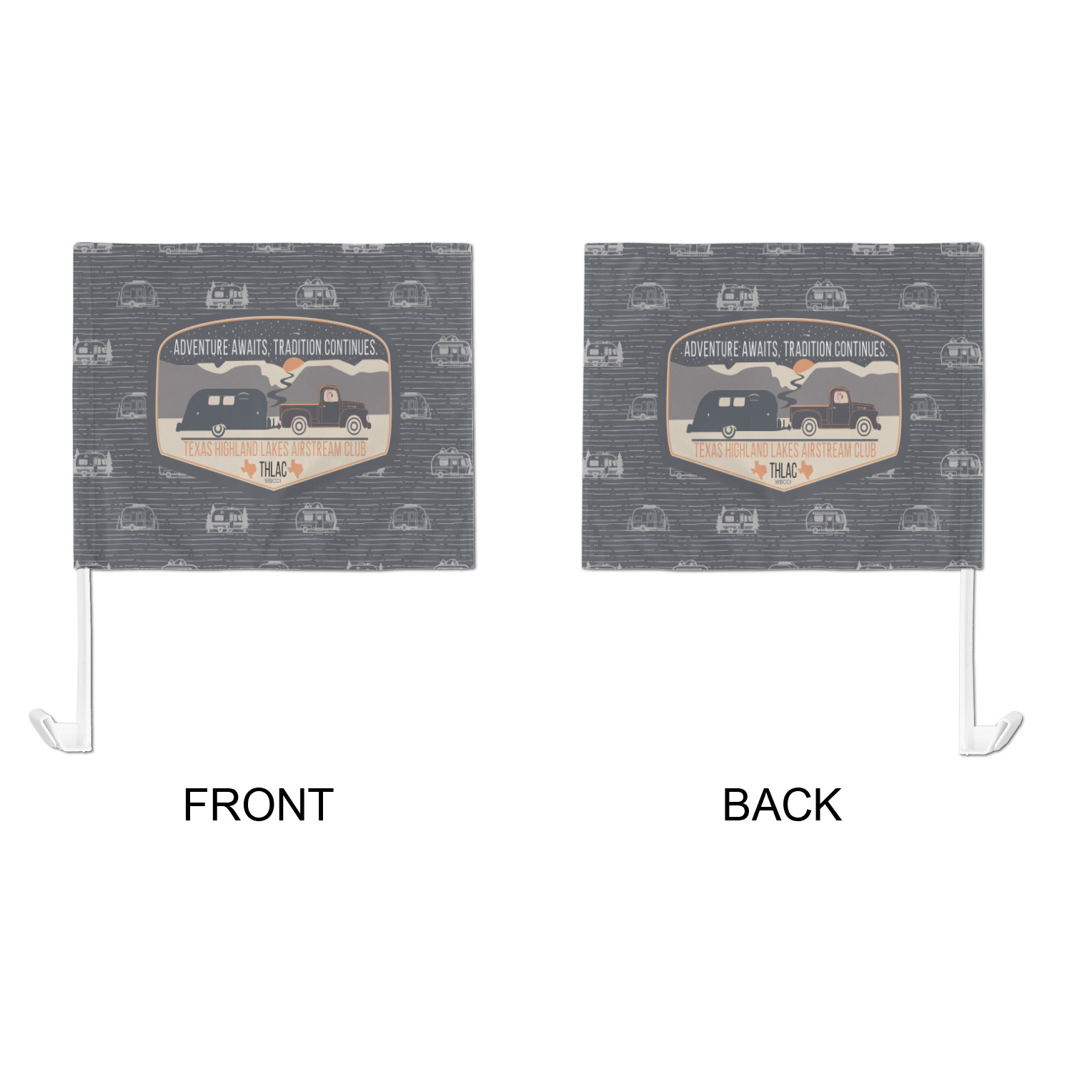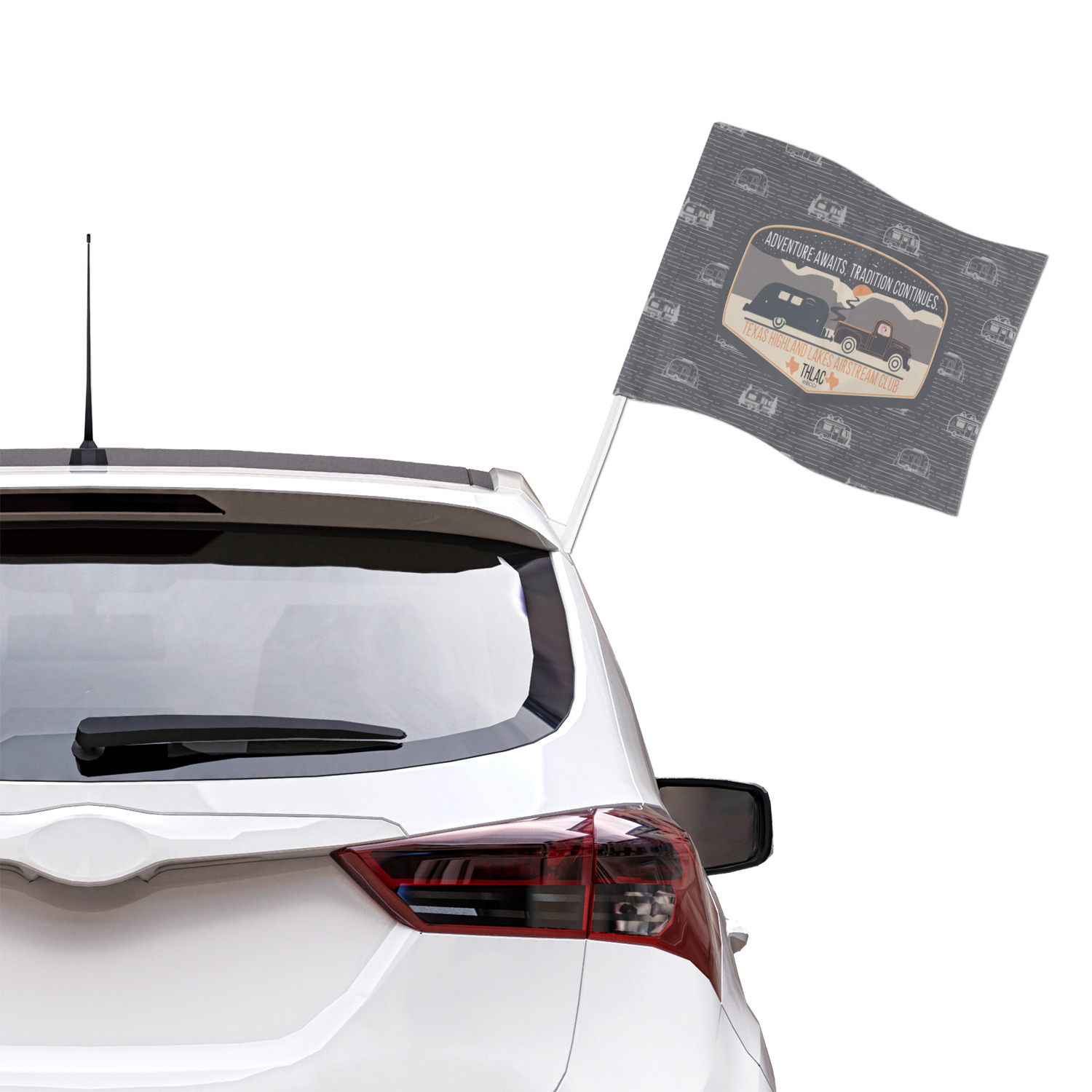 Our personalized flags are made from a durable, yet lightweight cloth that will proudly bear your logo or design of choice, while withstanding the outside elements. We have two size options - 8" x 11" and 11" x 15". Both come with a flag pole which includes a clip that secures the pole to the side window, whether it is rolled up or down. The flags are printed on both sides to display your design from all directions.