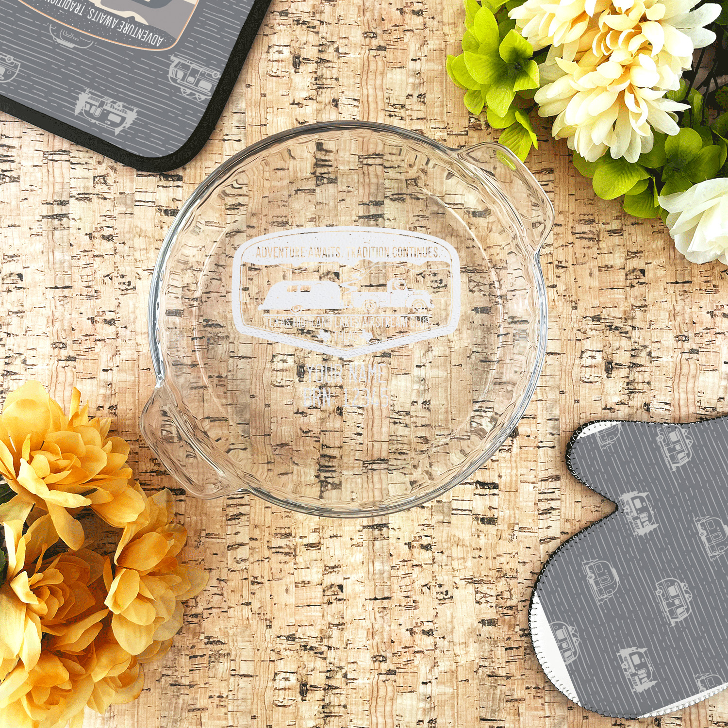 Use our design studio to design your very own pie plate which we will then laser engrave onto the bottom of the pie plate for you. Next time you take this pie plate to a pot luck no-one else will be able to claim it as theirs when its customized just for you!