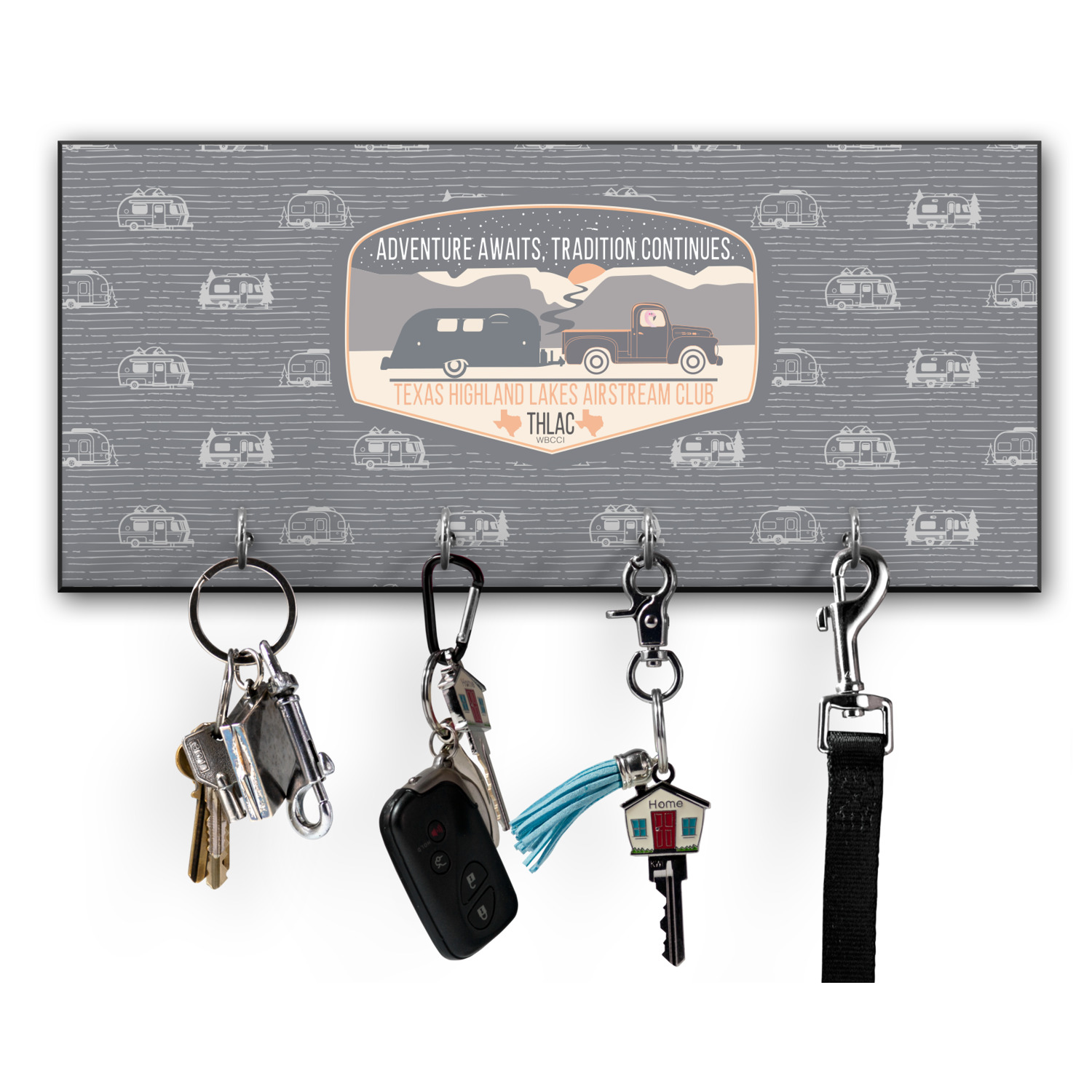 This 11" x 5" key hanger is made of sturdy wood and has four metal hooks lining the bottom. This is the perfect size for a family with several drivers. Not only can you hang keys on it though, but pet leashes and other small items. The board is black on the sides and back and is printed with the design of your choice on the front.