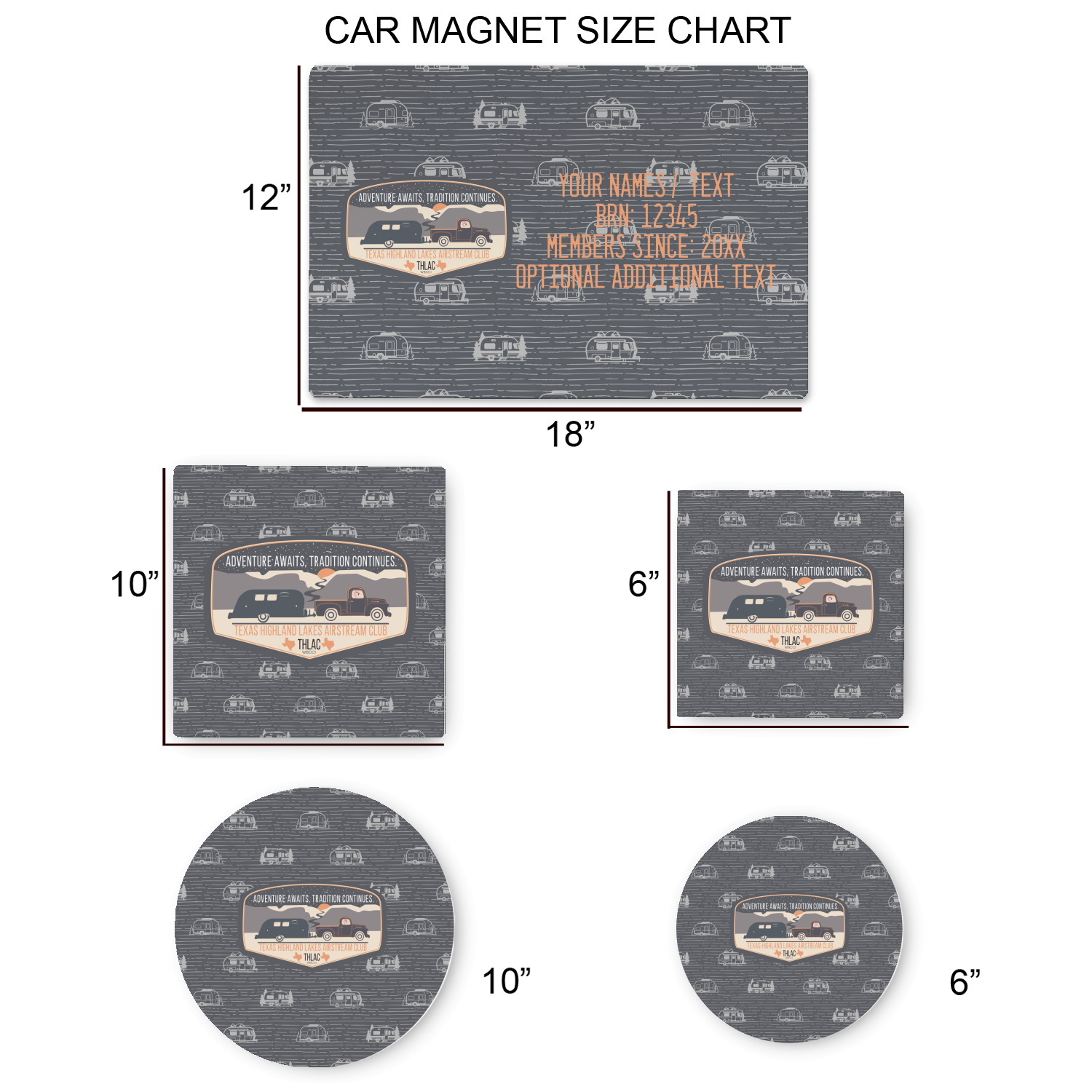 Your personalized large car magnet measures at 18 inches wide by 12 inches tall. They are 1 millimeter thick, which is considered, within the industry, as the ideal thickness for automobile magnets. The magnetic car decals will adhere to any smooth, ferrous metal surface of your cars body, such as the trunk door or a side panel.