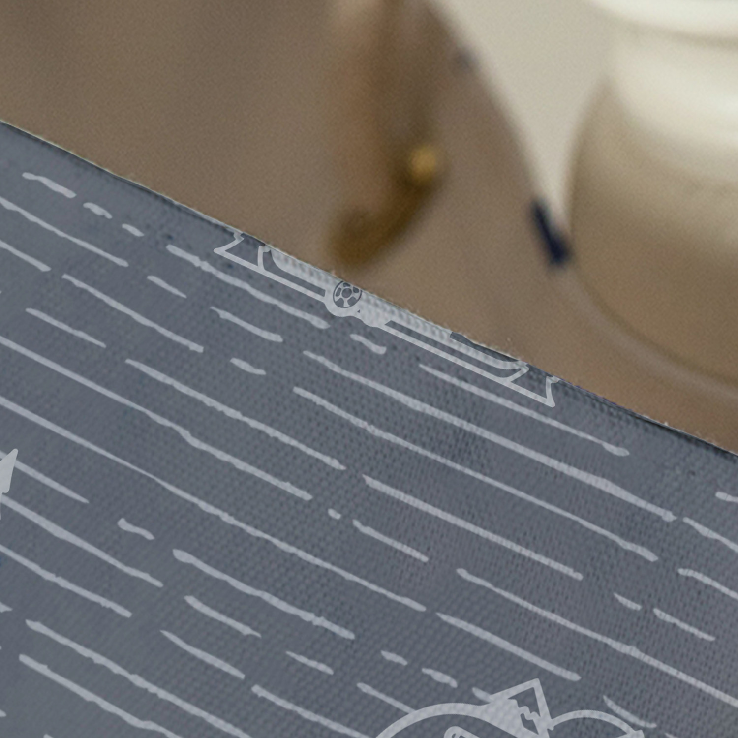 These large totes are handmade i.e. printed, cut and sewn right here in the USA. The canvas like material is printed using dye sublimation; the fabric is then cut and sewn along with a beautiful cream colored lining (to match the rope handles). The brass grommets are then added and the cream colored rope if fed through the grommets and knotted.