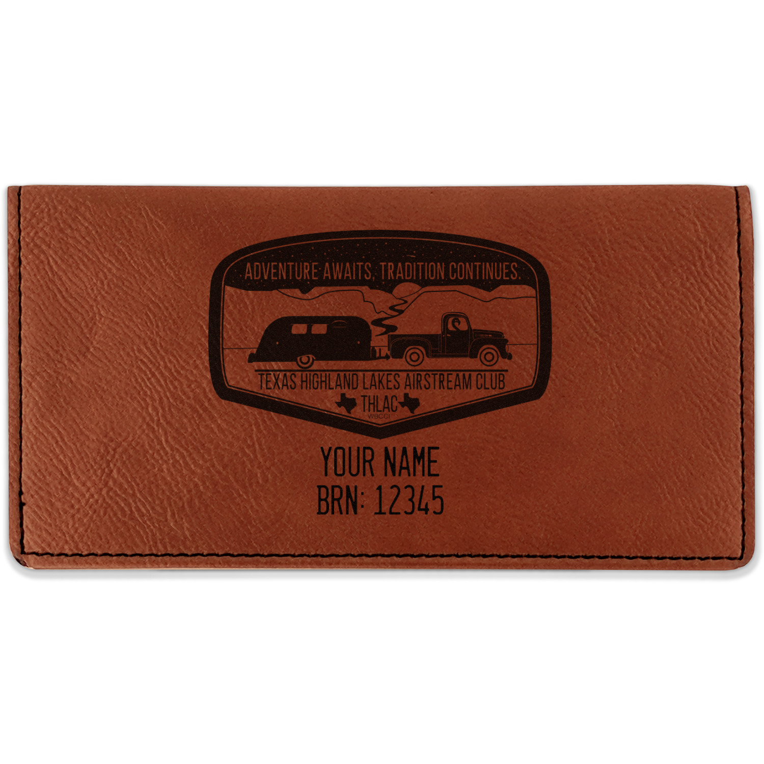 Go into our design center to start personalizing. Your checkbook cover will be laser engraved, making the graphic or text a black color. Choose a fun saying, monogram, or font to go on your checkbook cover. You have the opportunity to do it double or single sided.