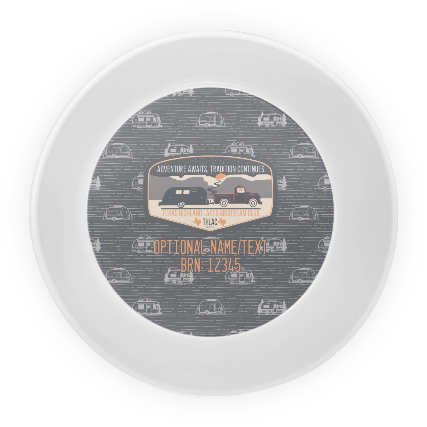 Our melamine dinnerware are BPA free, break-resistant, and dishwasher safe. Our first model has a more functional, standard look, and can hold up to 8 ounces of liquid. The second version we offer has a tapered edge and can hold up to 12 ounces of liquid. Both bowls display your customization on the base of the bowl's inside, and the exterior of the two models are both white.