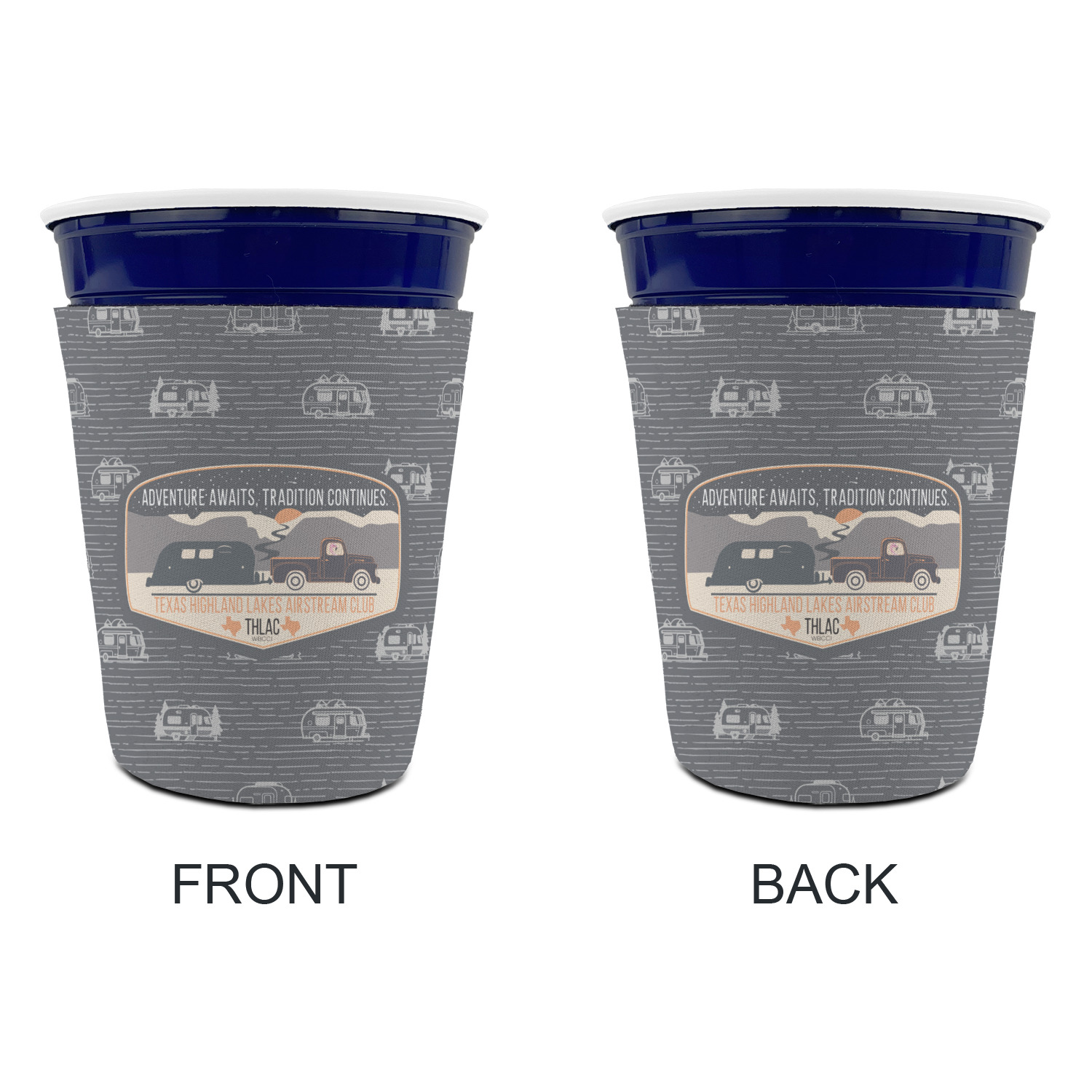 Made from neoprene with a polyester outer fabric and sewn seams, these premium quality party cup sleeves are very durable and will hold up to heavy use. They are available in 2 styles - with a bottom or just a sleeve to go around the outside of the tapered cup. The sleeve covers are about 4" tall and cover about 90% of the classic 16 oz. Solo cup.