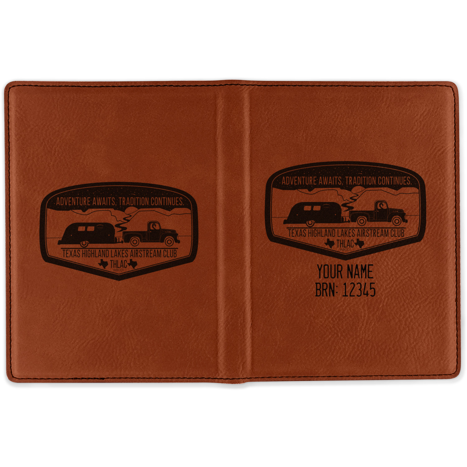 Although they are faux leather, these passport holders feel great in your hand. They are laser engraved either just on the front or the front and back. The image that is engraved onto your passport holder will be shades of black.