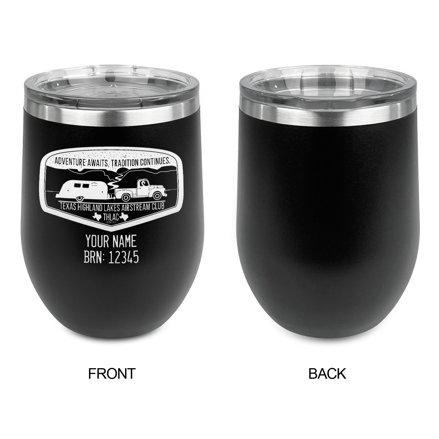 Design your wine tumbler with a cool graphic or quote. Even put your initials or monogram! These cups are laser engraved, which looks extra sharp on the metal tumbler.