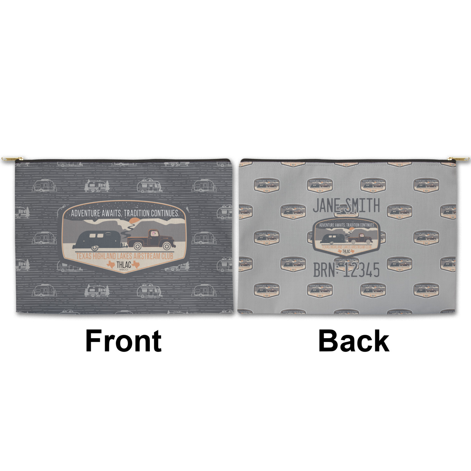 You can design both the front and the back of the pouch - same design, two complementary designs or two totally different designs - the choice is yours! We offer many different personalization styles i.e. name, name & initial, monograms - so the choice to personalize is also yours.