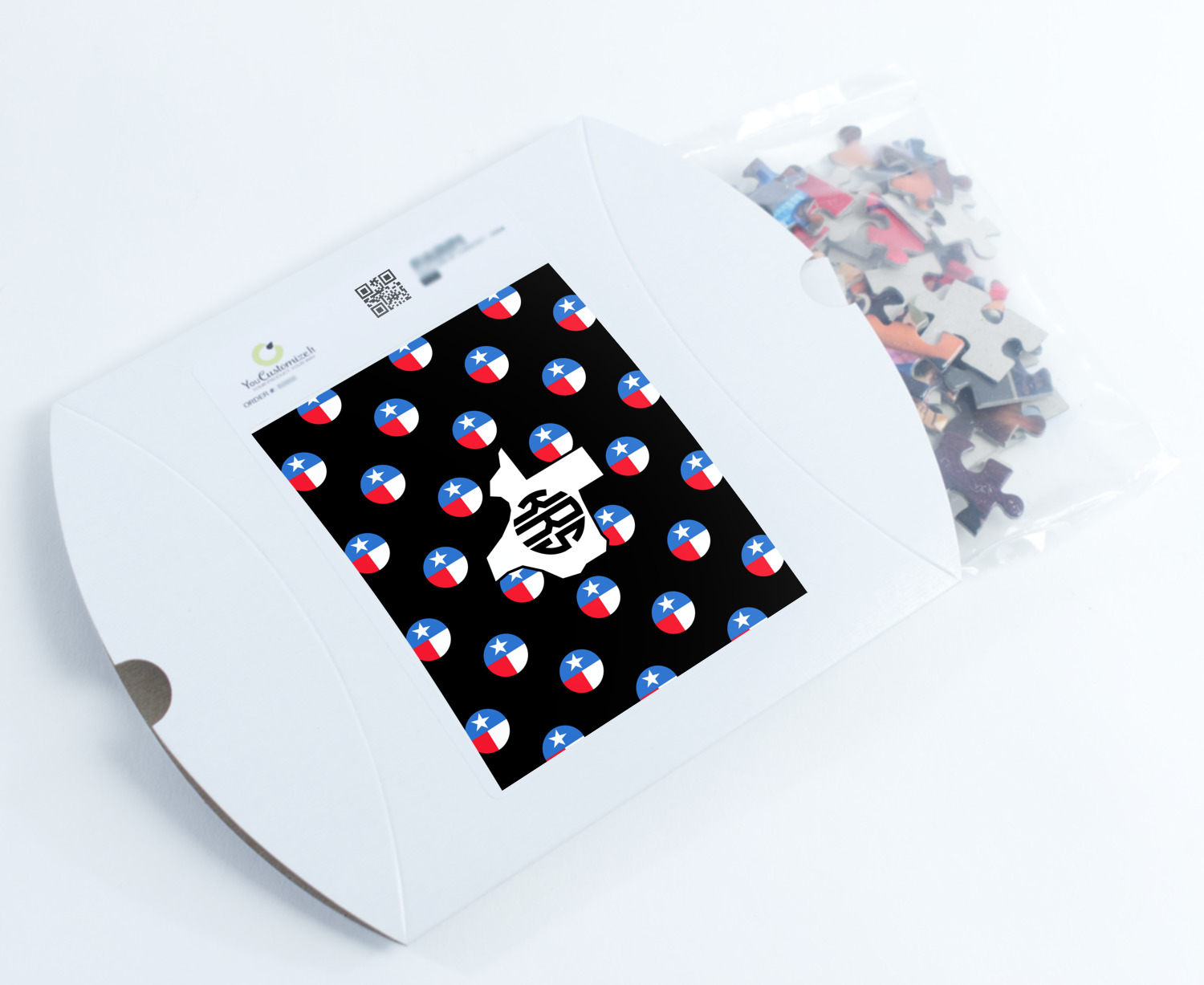 You can also upload your logo or art that you or your kids drew. To create more challenging jigsaw puzzles, you can create a pattern from with your logo or artwork. You can also add other elements such as text or personalization.