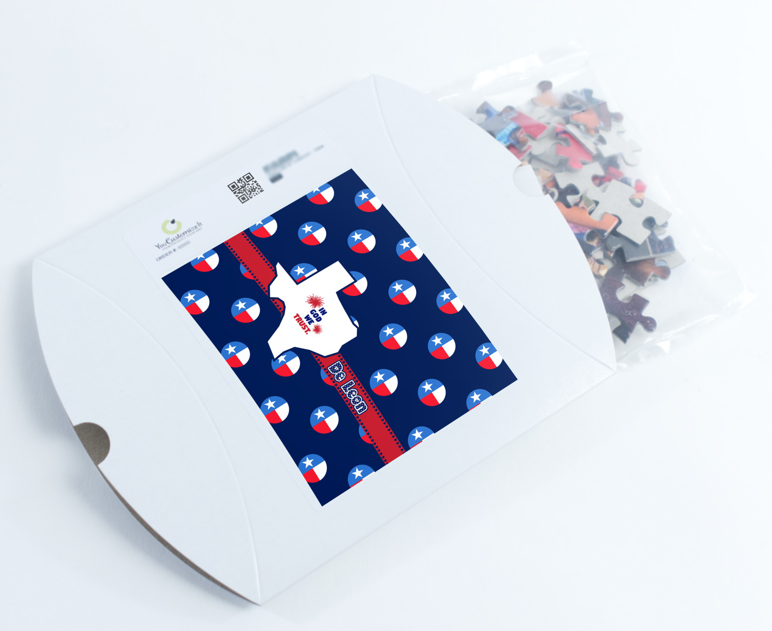 You can also upload your logo or art that you or your kids drew. To create more challenging jigsaw puzzles, you can create a pattern from with your logo or artwork. You can also add other elements such as text or personalization.