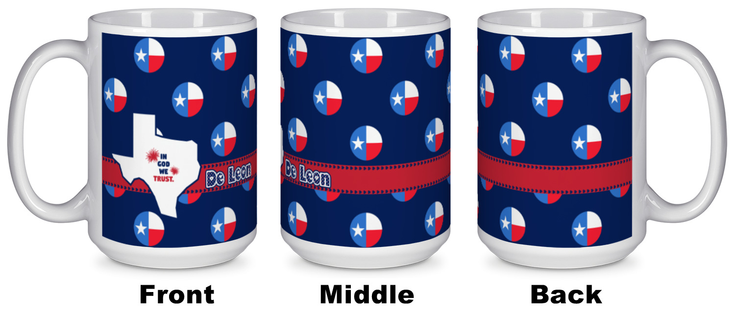 Our ceramic mugs have your design or photo printed along the surface with a gloss finish. The ceramic material of our mugs is dishwasher and microwave safe so you can reheat your tea or coffee if needed! We offer two different base colors with multiple mug sizes. The white ceramic mugs come in three size options - 11 oz., 15 oz., and 20 oz. Our black ceramic mugs are sold in either 11 oz. or 15 oz. sizes.