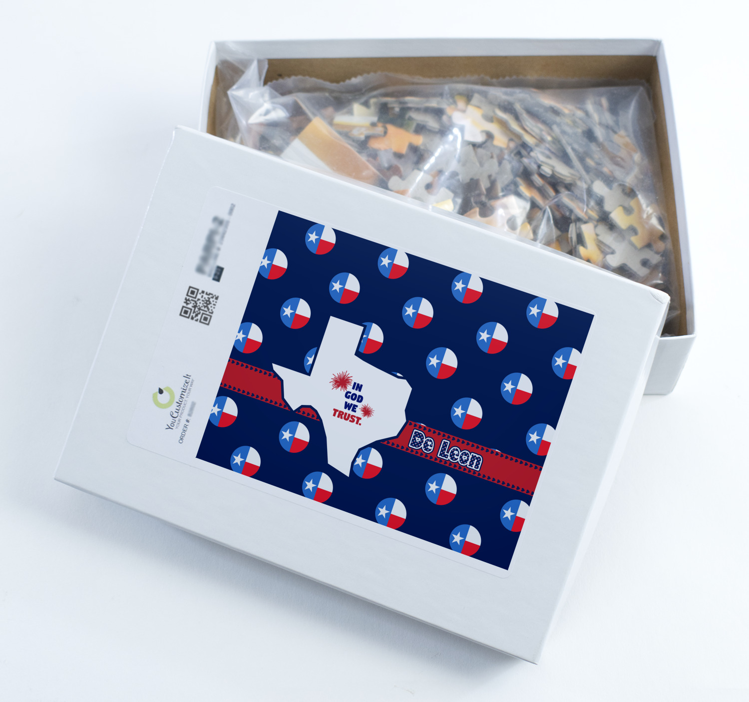 At YouCustomizeIt.com, you get to decide what you want on your puzzle. A scenic picture, a family photo, framed photo, photo with text, artwork, logo, patterns etc. You decide what you want.