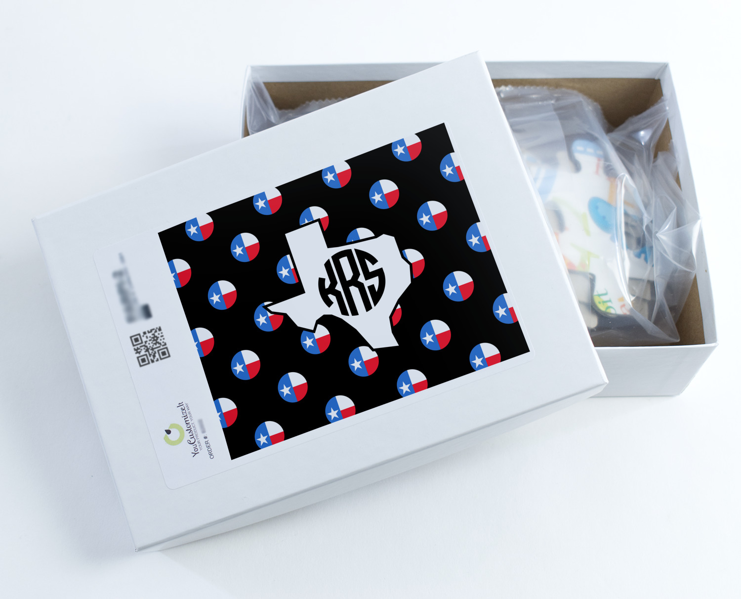 Calling all Texas State lovers. Everything is bigger in Texas and this Texas design is no different. The State of Texas is front and center surrounded by the State flag in the fun shape of polka dots.