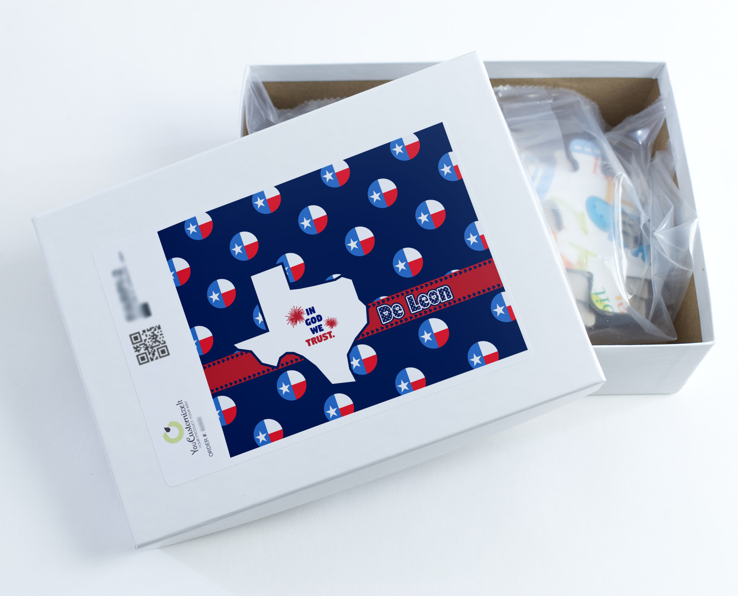 Calling all Texas State lovers. Everything is bigger in Texas and this Texas design is no different. The State of Texas is front and center surrounded by the State flag in the fun shape of polka dots.