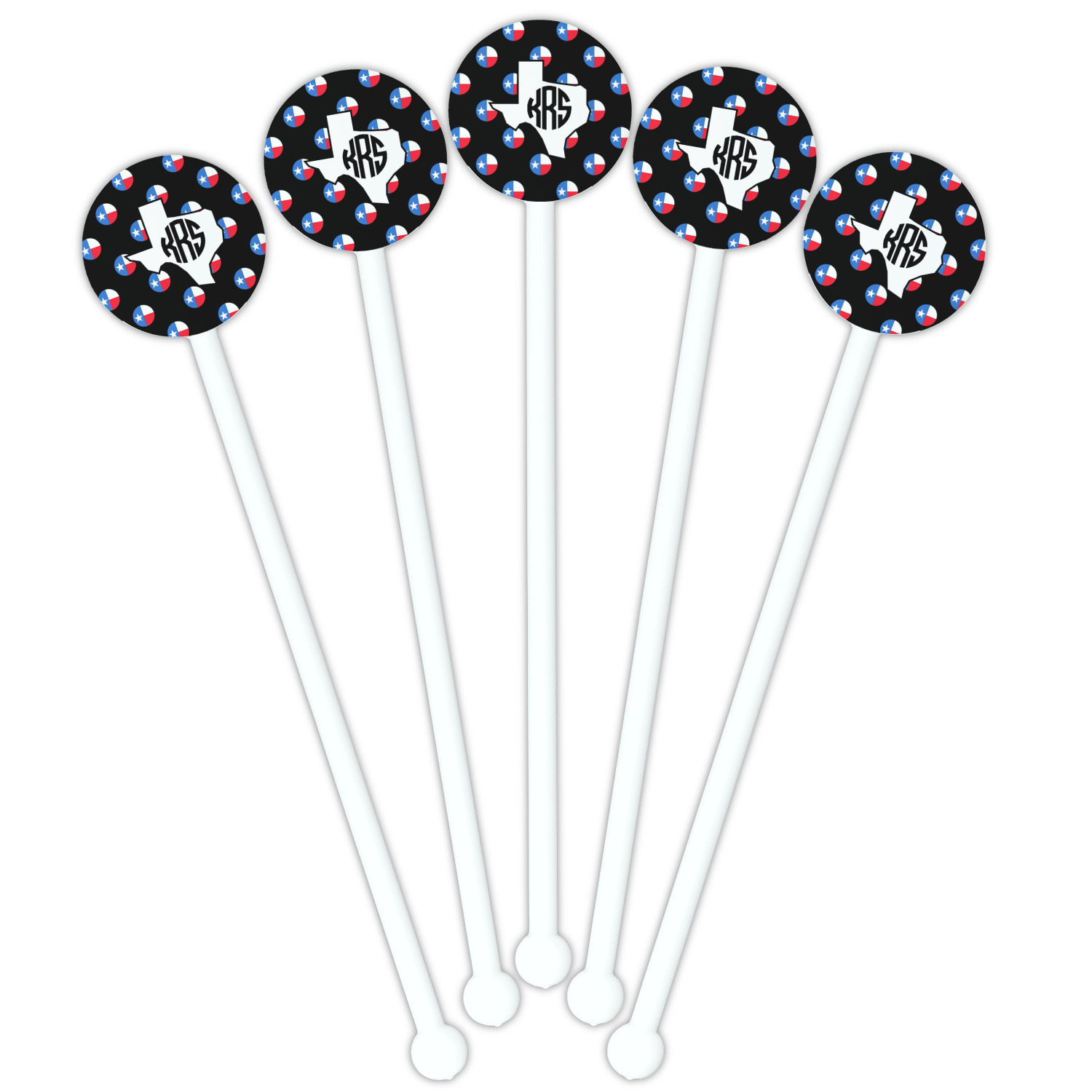 Shape + Symbol Designs for 5.5" Round Plastic Stir Sticks - White - Double-Sided