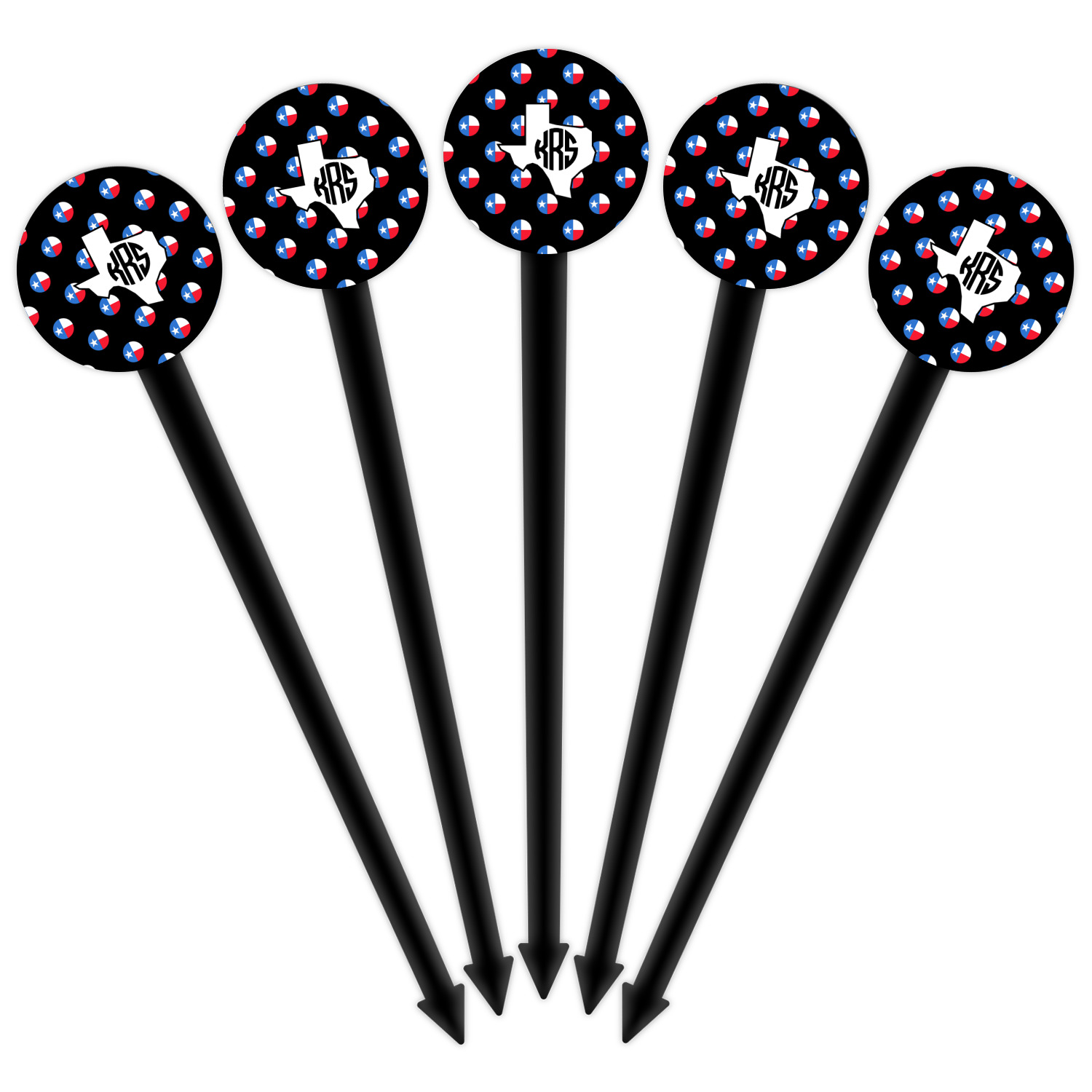 Shape + Symbol Designs for 6" Round Plastic Food Picks - Black - Single-Sided