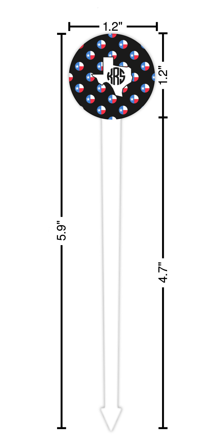 Our plastic cocktail picks have a round disc on top that is printed in full color with your event theme, colors, your logo, your photo, names, initials, monograms etc.
