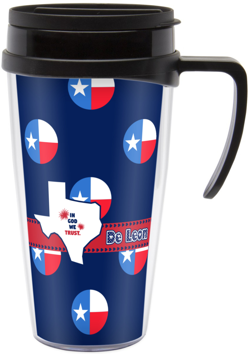 These thermal mugs are free of BPA, and insulated, to keep your drinks hot or cold. The black, snap on lid and the slider for sipping allows you to conveniently sip your drink without constantly worrying about a disastrous spill. We offer this mug with and without a handle, to better suit your needs. Each custom thermal mug holds up to 16 ounces of liquid and displays your customization on all sides on premium gloss media inserts.