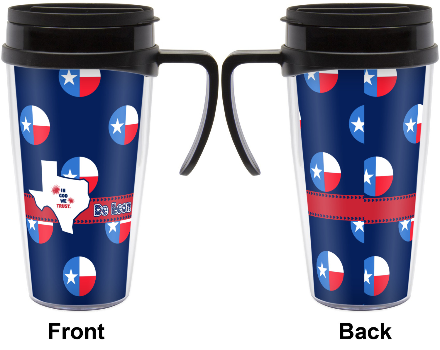 Keep your drink secure while on your daily commute with one of our personalized travel mugs! These travel mugs will add a splash of color and creativity to your kitchen counter-top, car cup holder, office desk, or wherever you choose to place them! With these custom mugs, you'll never have to settle for a boring, run-of-the-mill travel mug.