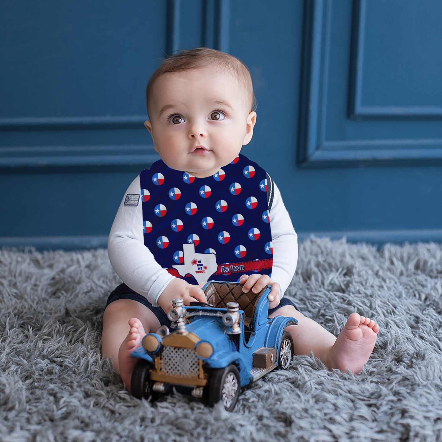 Made of soft polyester, each customizable bib hugs comfortably around the neck to catch every drip and drool. Each bib design is printed with baby-safe ink and finished with a secure stitch pattern and velcro clasp. We carry two customizable bib styles -Microfiber Velour and Jersey Knit.