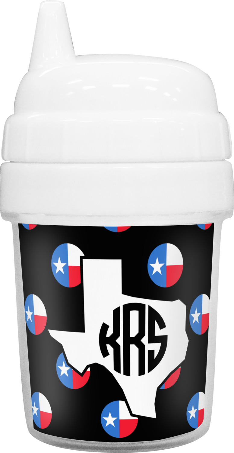 Our toddler cups are free of BPA, and have a twist-open lid so that you can easily fill and clean these cups for your young ones. Each cup also comes with a sippy nozzle to reduce spills. We offer these custom sippy cups in two different sizes; we have a baby sippy cup that holds 5 ounces, and a toddler sippy cup that holds 10 ounces. Your customization is printed on a premium glossy media insert that is placed within these toddler drinking cups.