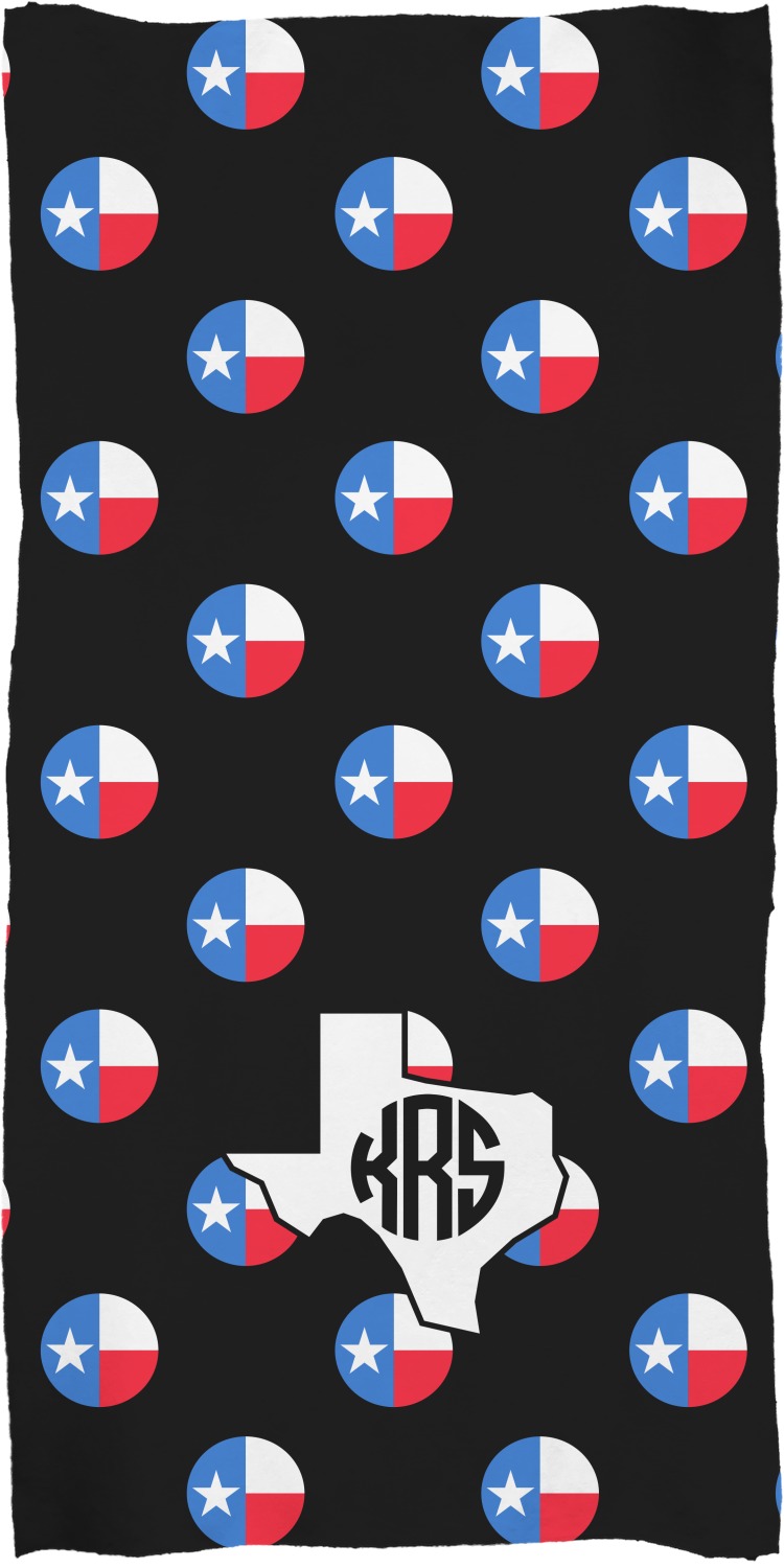 These customized bath towels are slightly larger than your standard towel and are the ideal size for wrapping around your body. They measure approximately 60" x 30". Your customization is displayed across the entire front face of the towel, while the back is white.