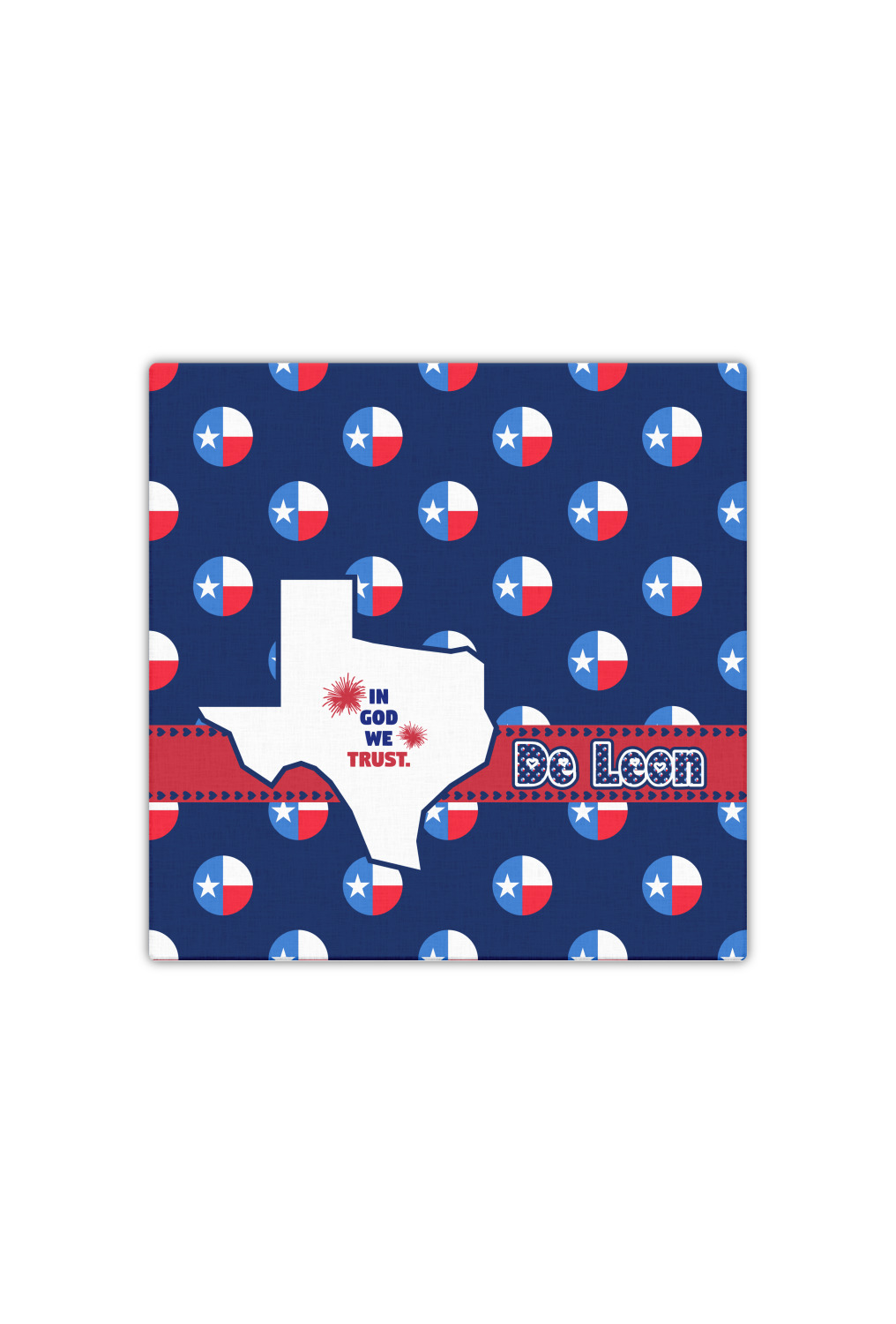 Calling all Texas State lovers. Everything is bigger in Texas and this Texas design is no different. The State of Texas is front and center surrounded by the State flag in the fun shape of polka dots.