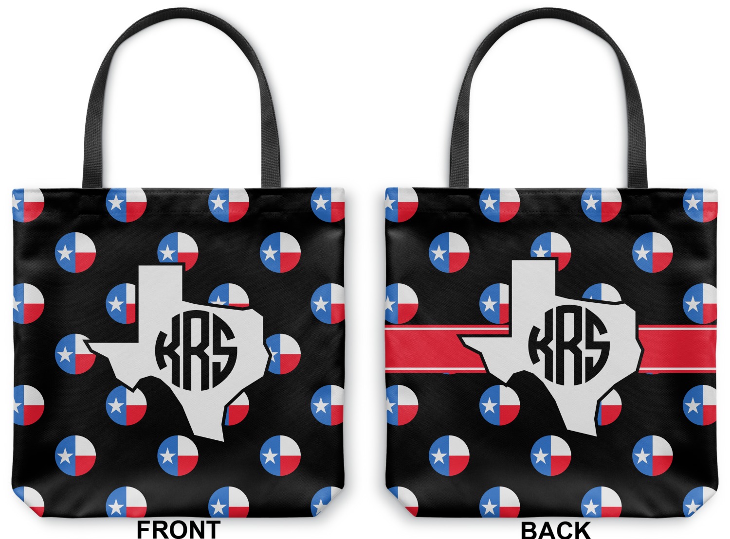 Our totes are made right here in the USA. Your design is printed on canvas fabric; the fabric is then cut and sewn on the sides and on the bottom to add an approximately 3.5 inch gusset. Black cotton handles are sewn in and reinforced. Your tote has a designs on both sides - the designs can be the same or different - the choice is yours. The inside of the tote has a black fused lining.
