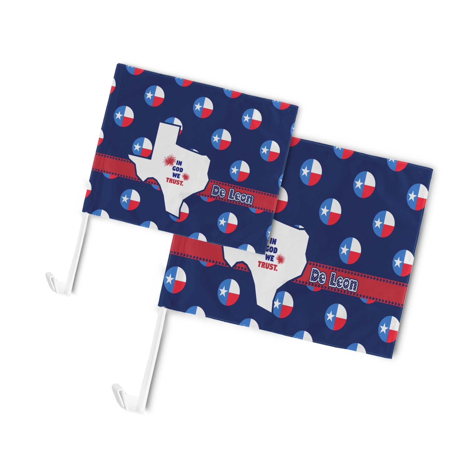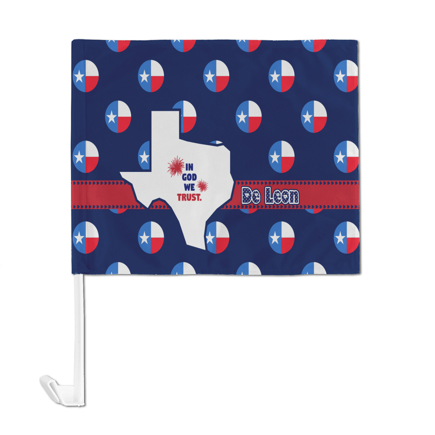 Our personalized flags are made from a durable, yet lightweight cloth that will proudly bear your logo or design of choice, while withstanding the outside elements. We have two size options - 8" x 11" and 11" x 15". Both come with a flag pole which includes a clip that secures the pole to the side window, whether it is rolled up or down. The flags are printed on both sides to display your design from all directions.