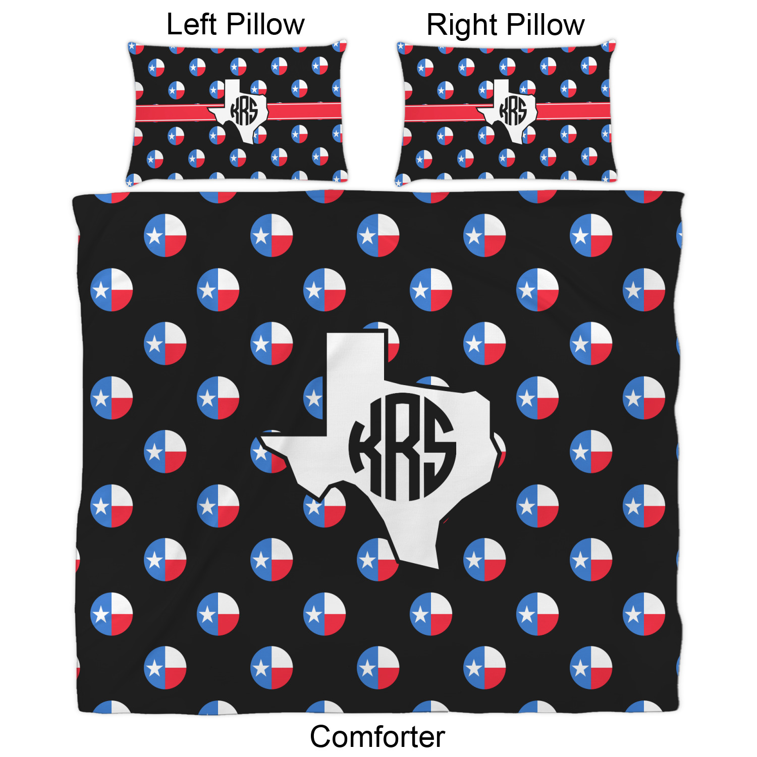 We have hundreds of different design templates for you to choose from Each design can be customized to your exact specifications. Not only can you customize the comforter, but you can also customize each pillow sham e.g. for a queen comforter set you have have Mr & Mrs pillow shams with the last name on comforter.
