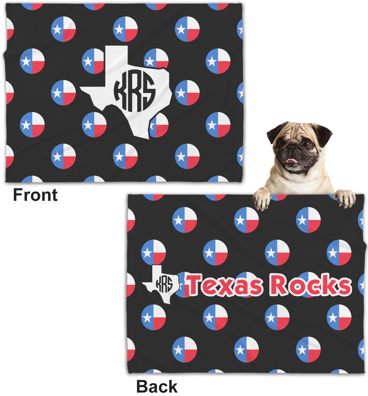 These dog blankets are crafted from a gentle, soft-to-the-touch, minky material. We print your customizations, either matching or differing, on both the top and underside of the blanket. These personalized dog blankets are available in two sizes: regular and large. Our regular size, at 40" x 30", accommodates small and some medium size dogs. At 60" x 50", our large dog blanket is a better fit for bigger breeds. Though specialized for dogs, these blankets still make a thoughtful gift for your favorite feline, or any other pet in mind!
