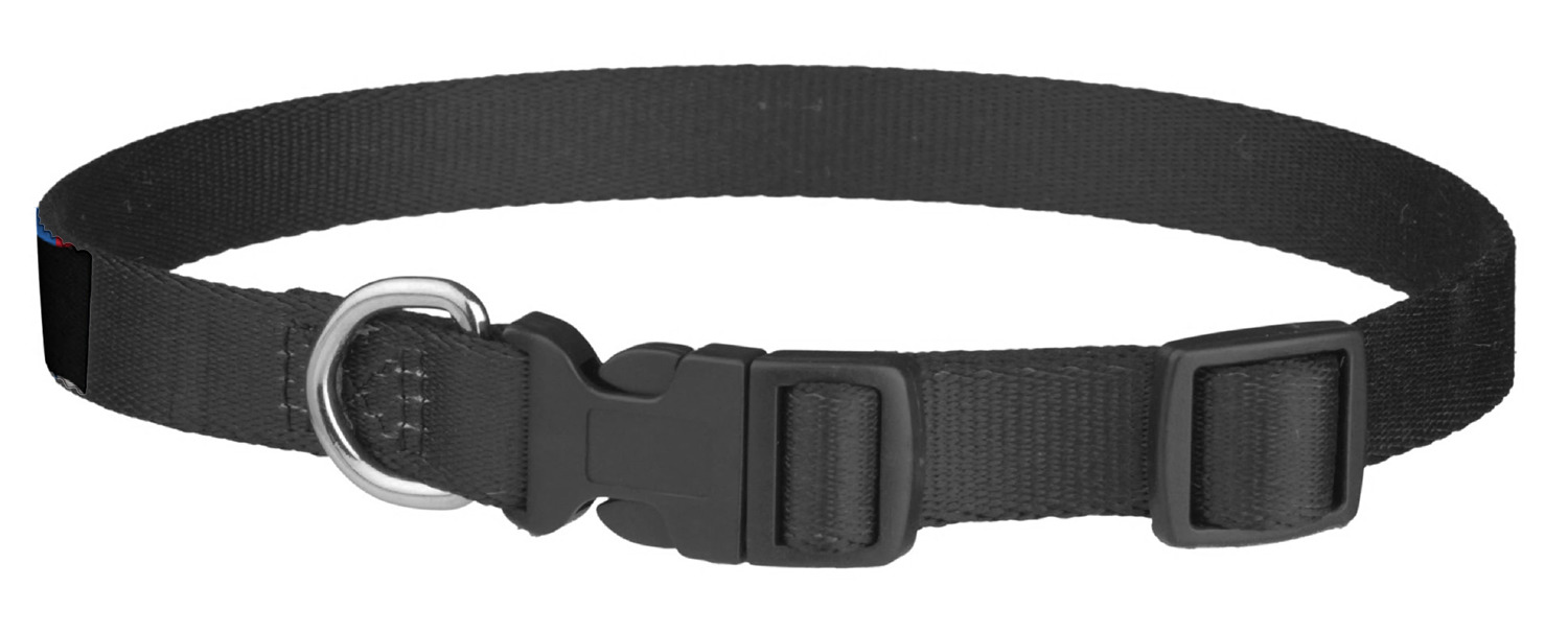 This sturdy collar, made from a durable nylon weave, will outlive your dog's episodes of excited tugging and pulling. Courtesy of its thick plastic buckle and adjuster, this collar is adjustable and accommodating of any dog. Structurally, the collar is a single piece of nylon weave that is sewn together, and features a solid metal loop where you can attach a leash or dog tag. We print and display your dog's name and pattern across the middle of the personalized dog collar.