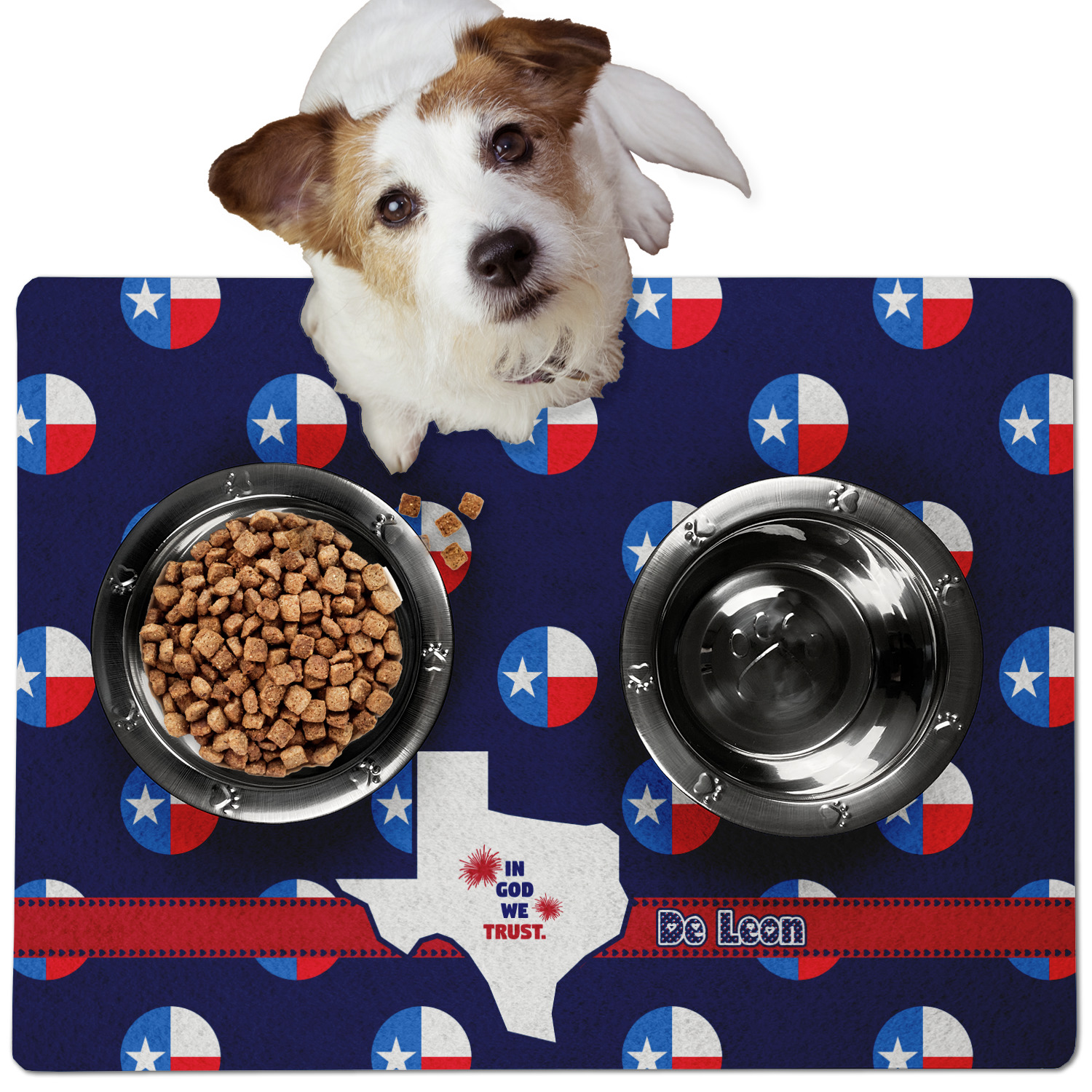 This dog bowl mat, fabricated from polyester, proudly displays your customized design on its top, while its bottom includes a non-slip rubber. This feature allows it to remain firmly in place, even when your dog spills his/her water. With 3 sizes available (18" x 12", 24" x 18", 30" x 24"), the pet food mat has ample space for both a food and water bowl for any sized dogs. Though specified for dogs' use, these mats are also a splendid option for cats.