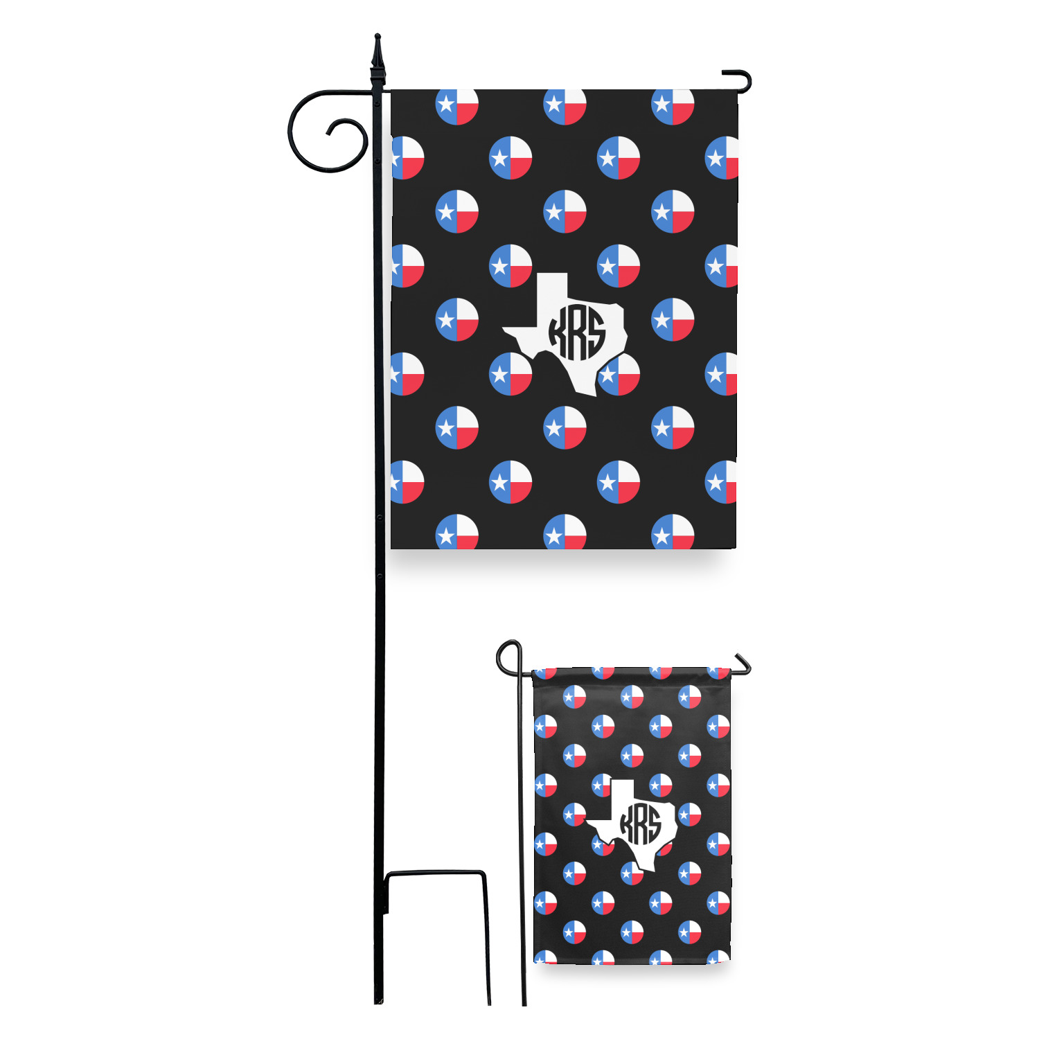 These custom garden flags are made of a durable, double-ply, polyester weave, allowing them to withstand the elements year round. The small flags measure at approximately 12 by 18 inches. The large flags measure out to 28 by 37 inches. You can order these decorative flags with your customization printed on the front only, or the front and back.