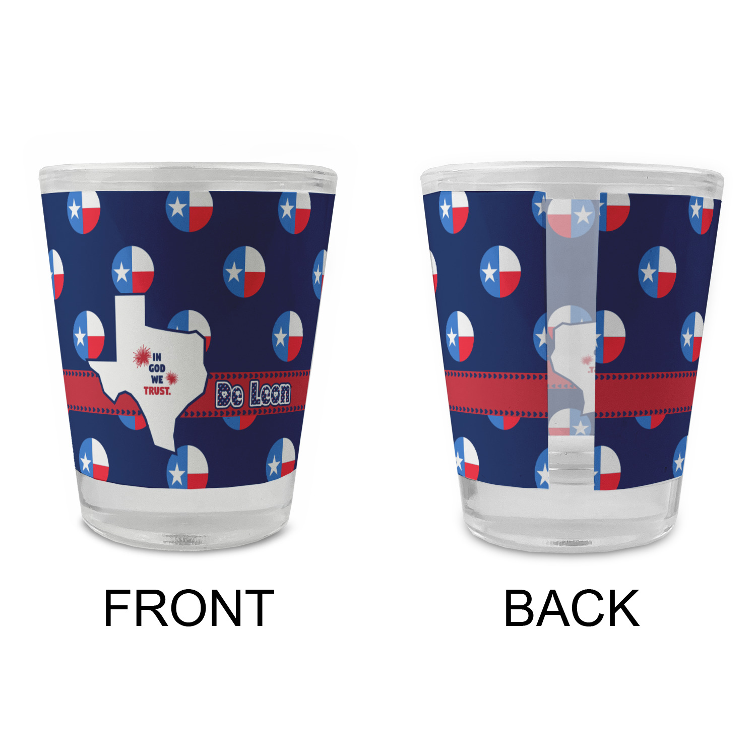Made with frosted glass, these shot glasses are printed in full color with the design of your choice. They are a standard 1.5oz shot glass and are 2.4" tall. The print is wrapped around the shot glass in a full wrap and boldly displays your customization.