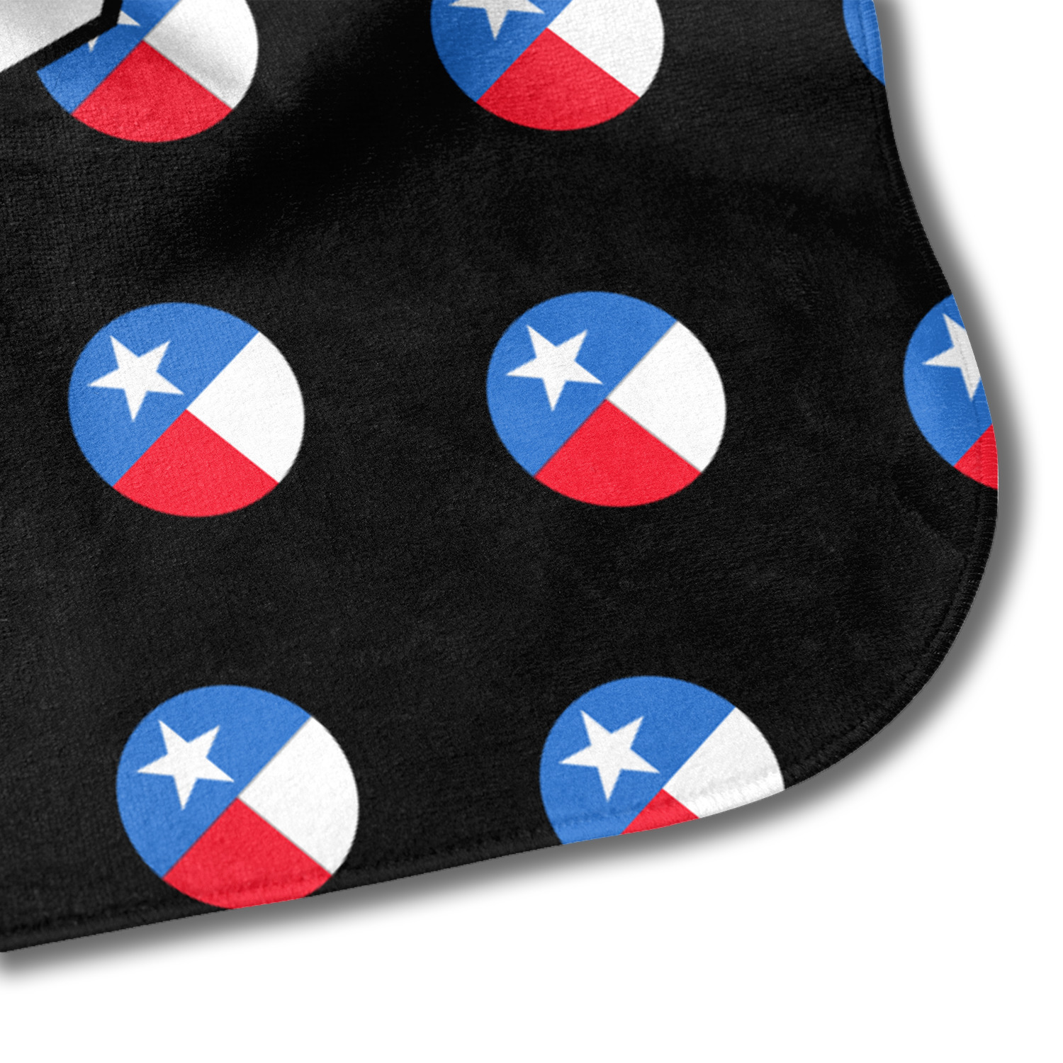 Calling all Texas State lovers. Everything is bigger in Texas and this Texas design is no different. The State of Texas is front and center surrounded by the State flag in the fun shape of polka dots.