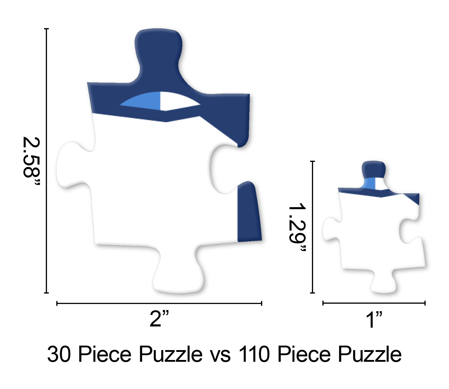 Our Jigsaw puzzles are perfect for children, teens and adults alike. We offer 5 different sizes of puzzles: