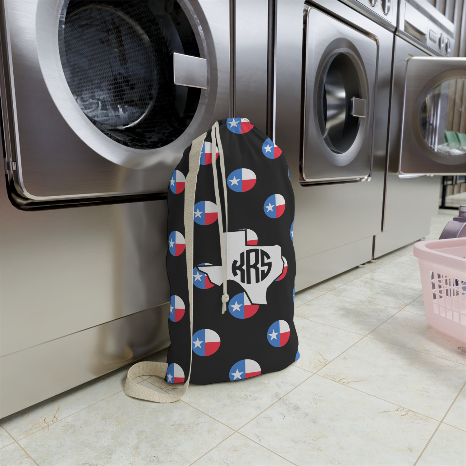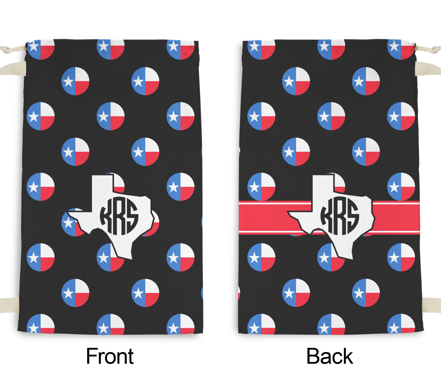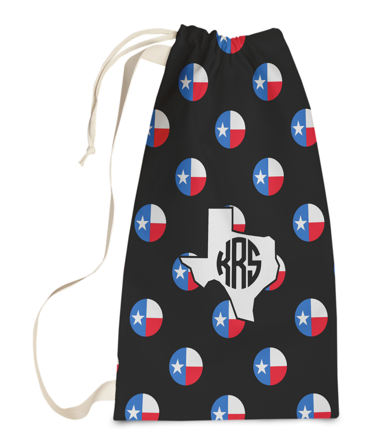 Carry your laundry in style with these customized laundry bags. Available in two sizes, featuring a natural colored woven strap and a cinch cord, these bags hold a lot of clothes or anything else you want to fit in them.