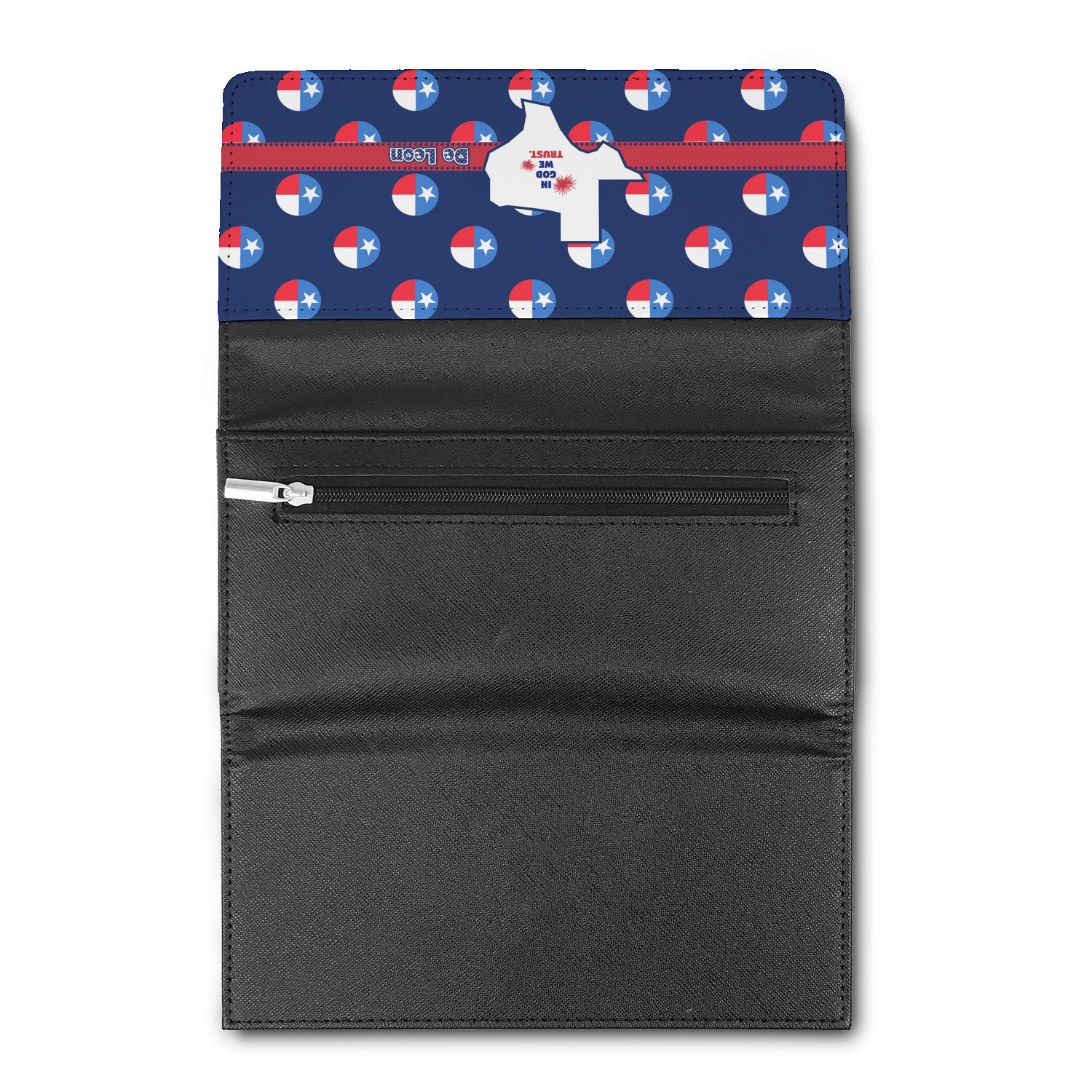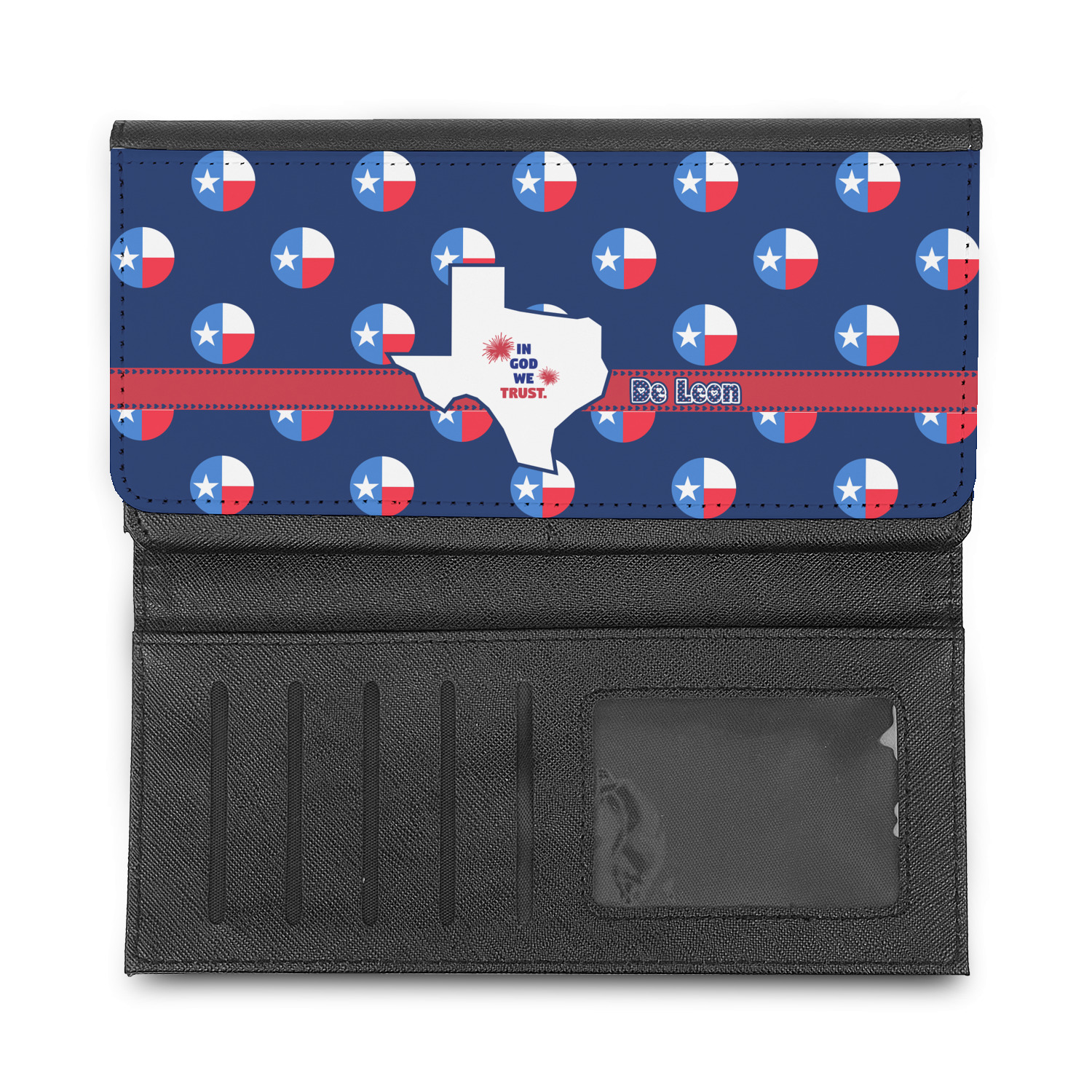 These beautiful wallets are a trifold design. The wallet is made of textured leatherette. The front section has a secure magnetic snap. The front flap is personalized with the artwork of your choice to make this wallet uniquely yours.